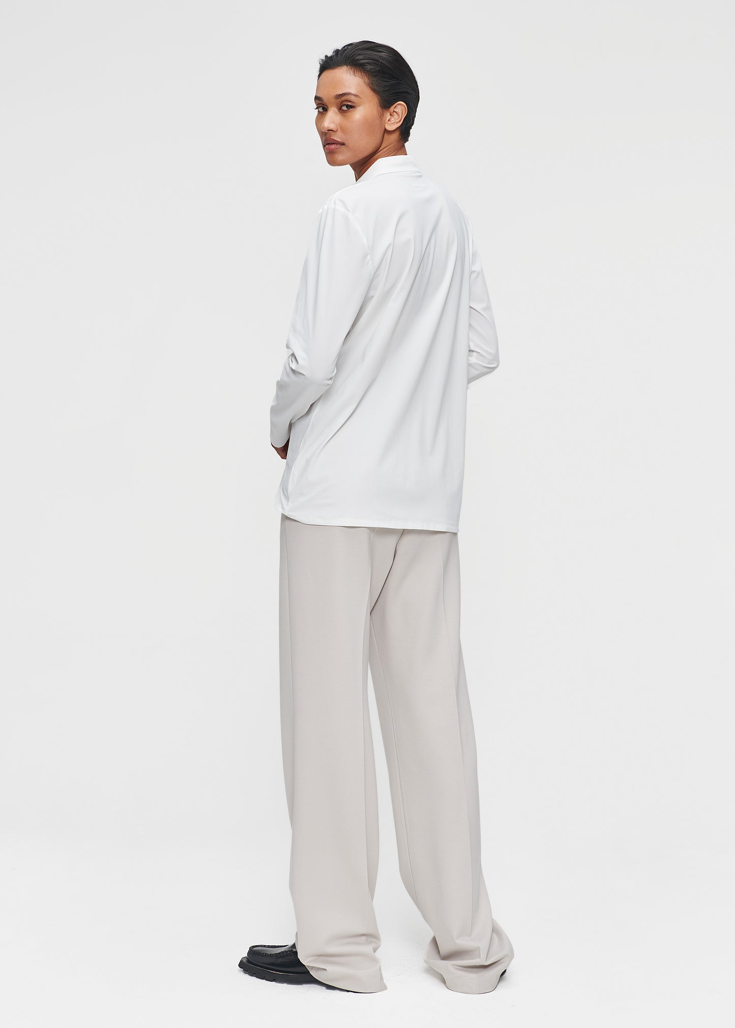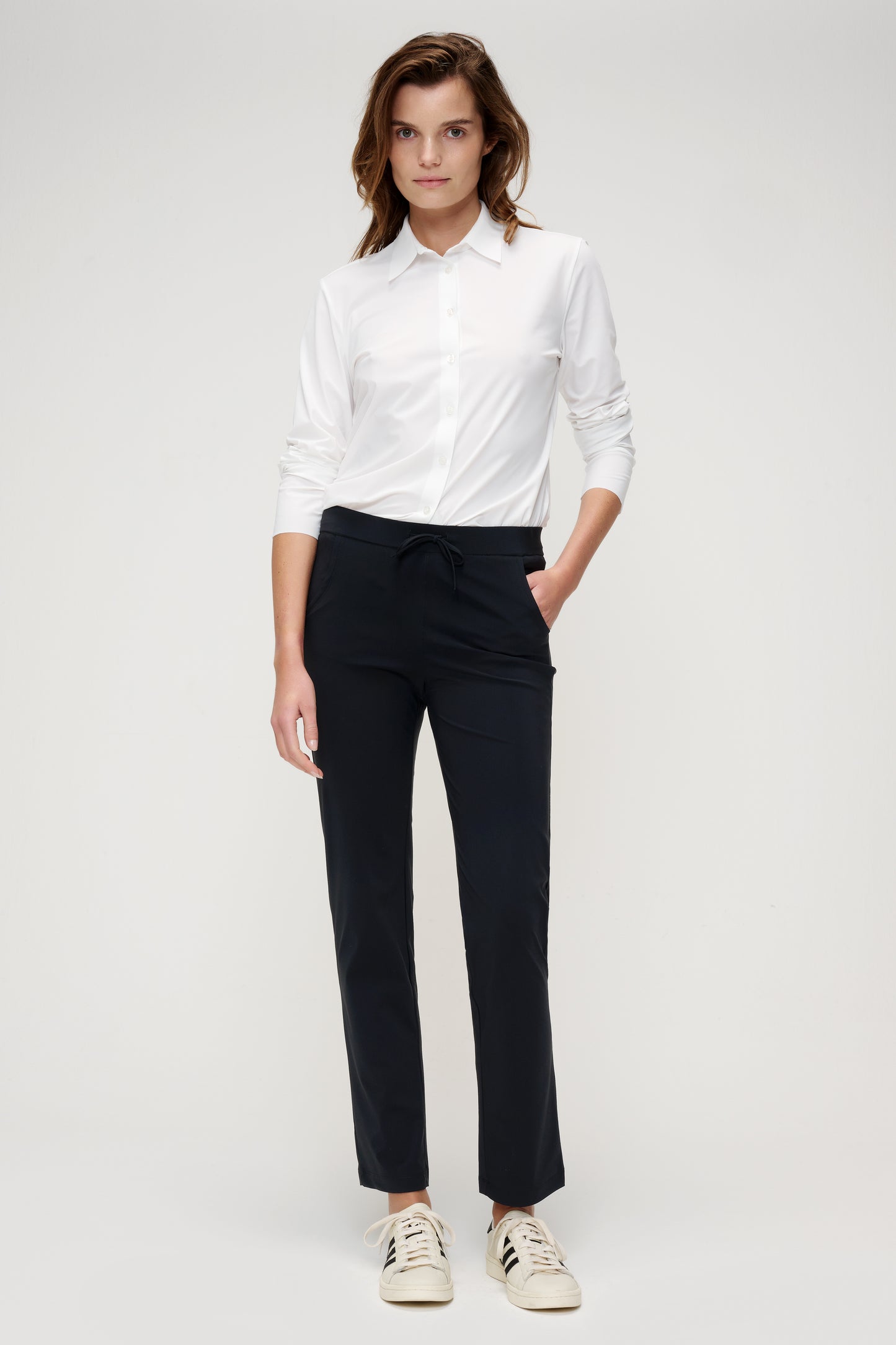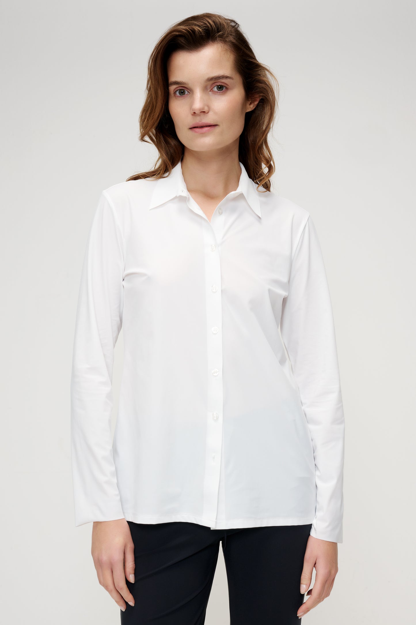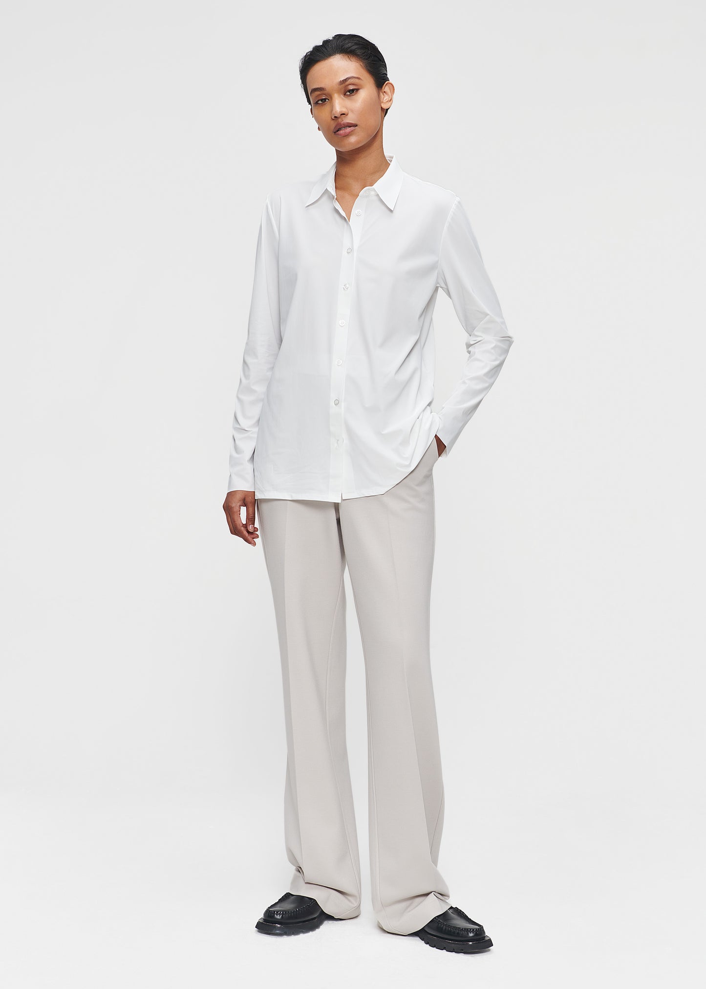 The TRVL DRSS Shirt is a need to have, as it is a comfortable and basic closet staple. It is the perfect basis for an easy everyday look as well as a smart business look. This perfect TRVL DRSS shirt has long sleeves, stand-up collar, and buttons on the front. This blouse is available in timeless off-white, black and ink blue.