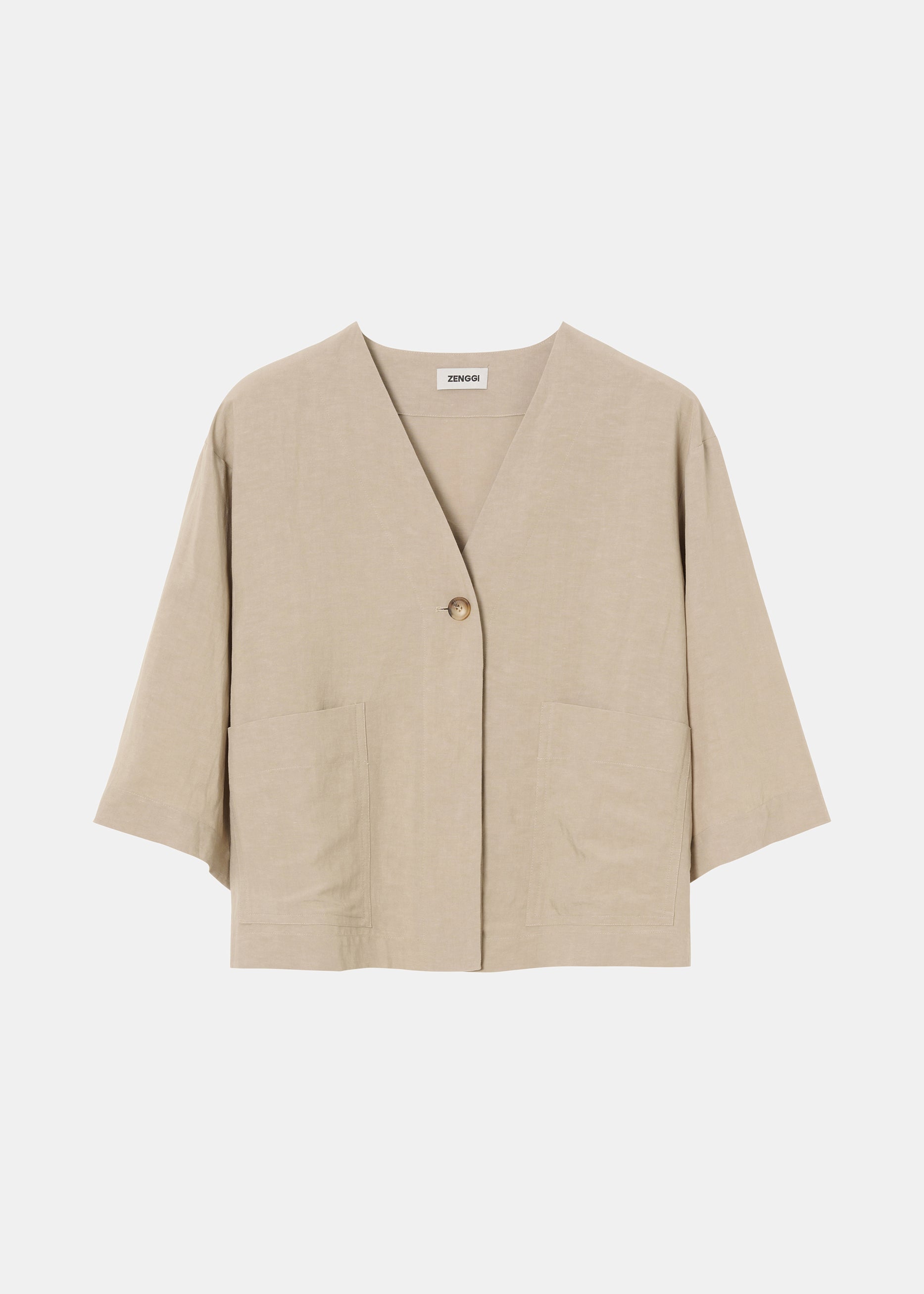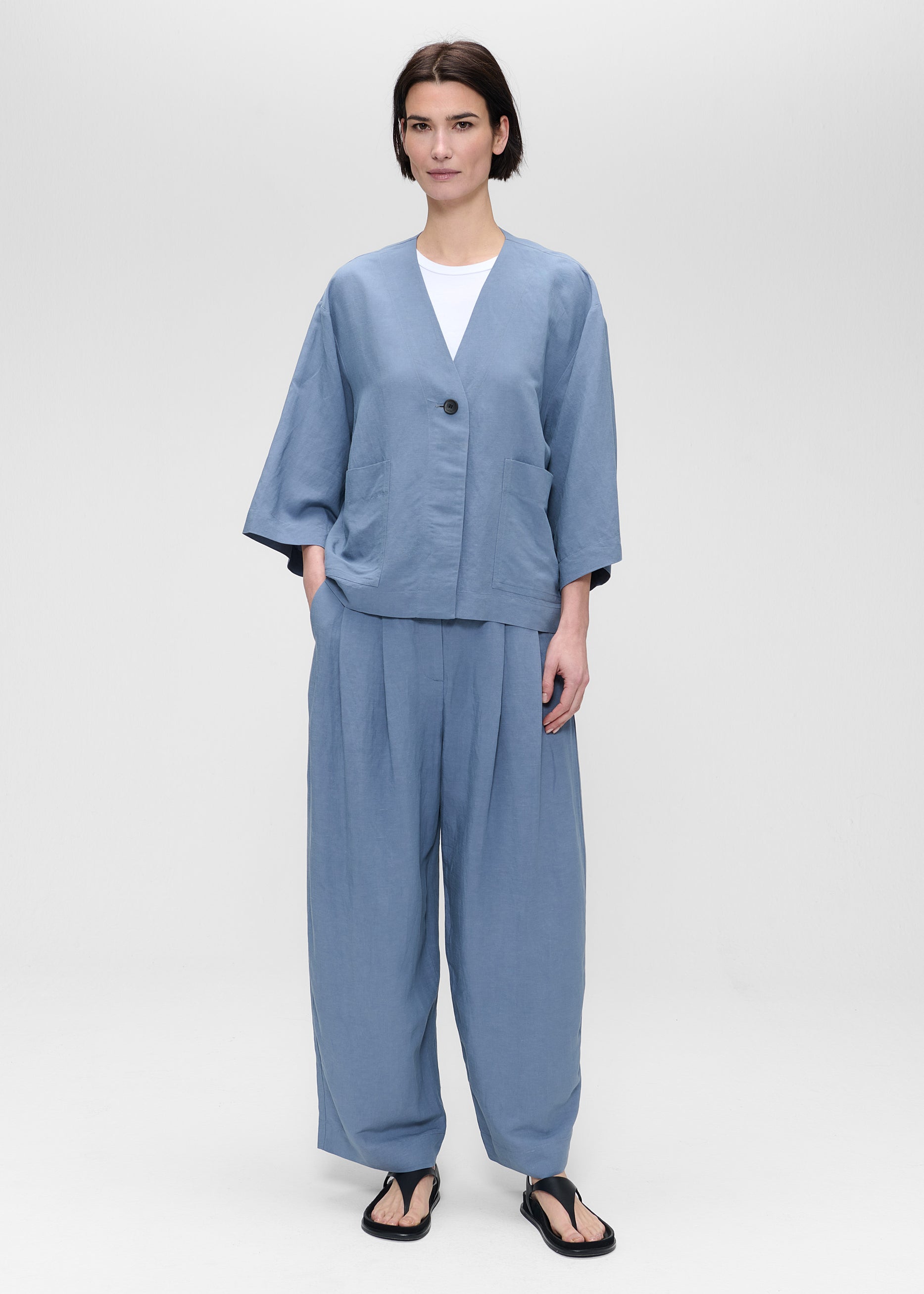 FINE LINEN VISCOSE CROPPED JADE PANTS |