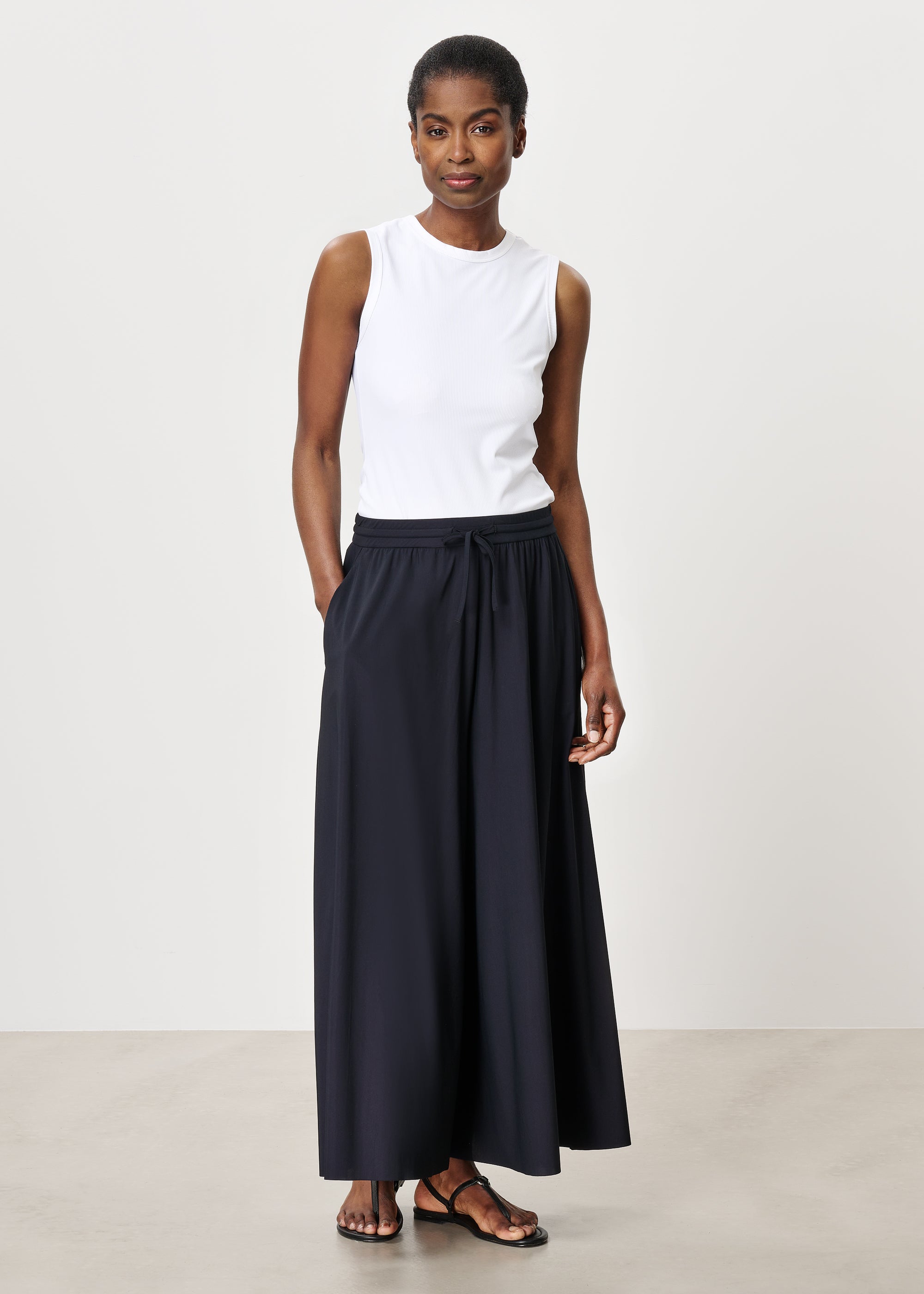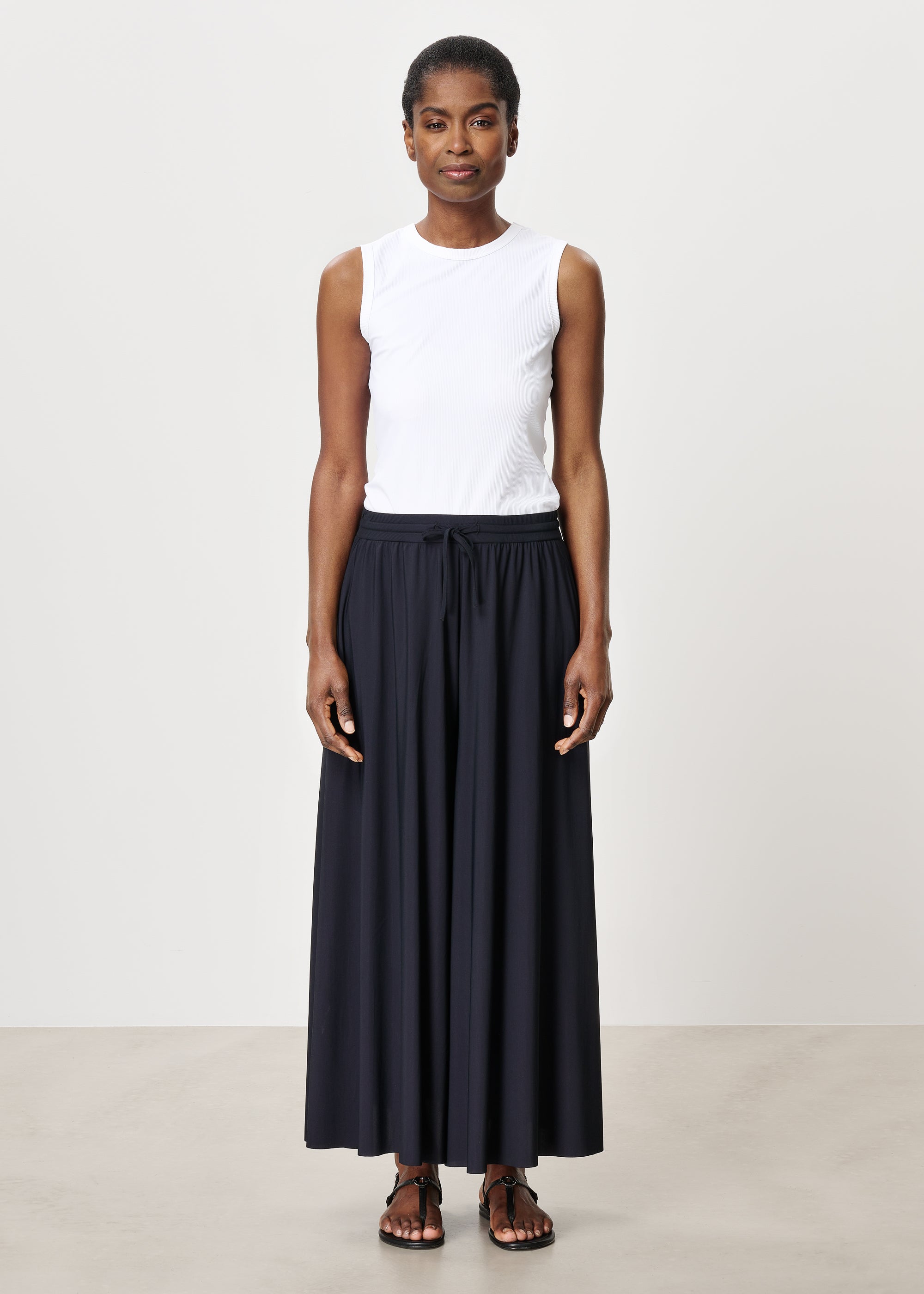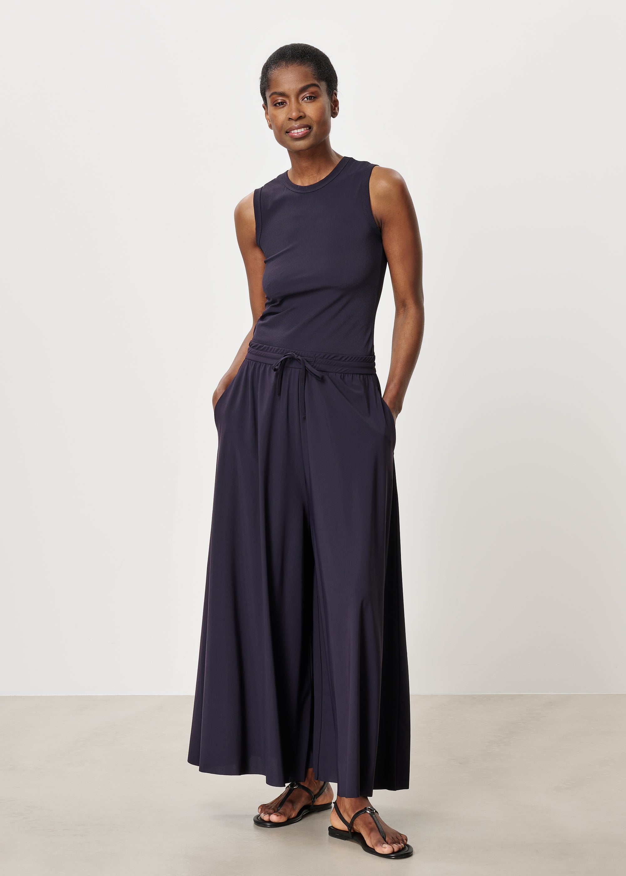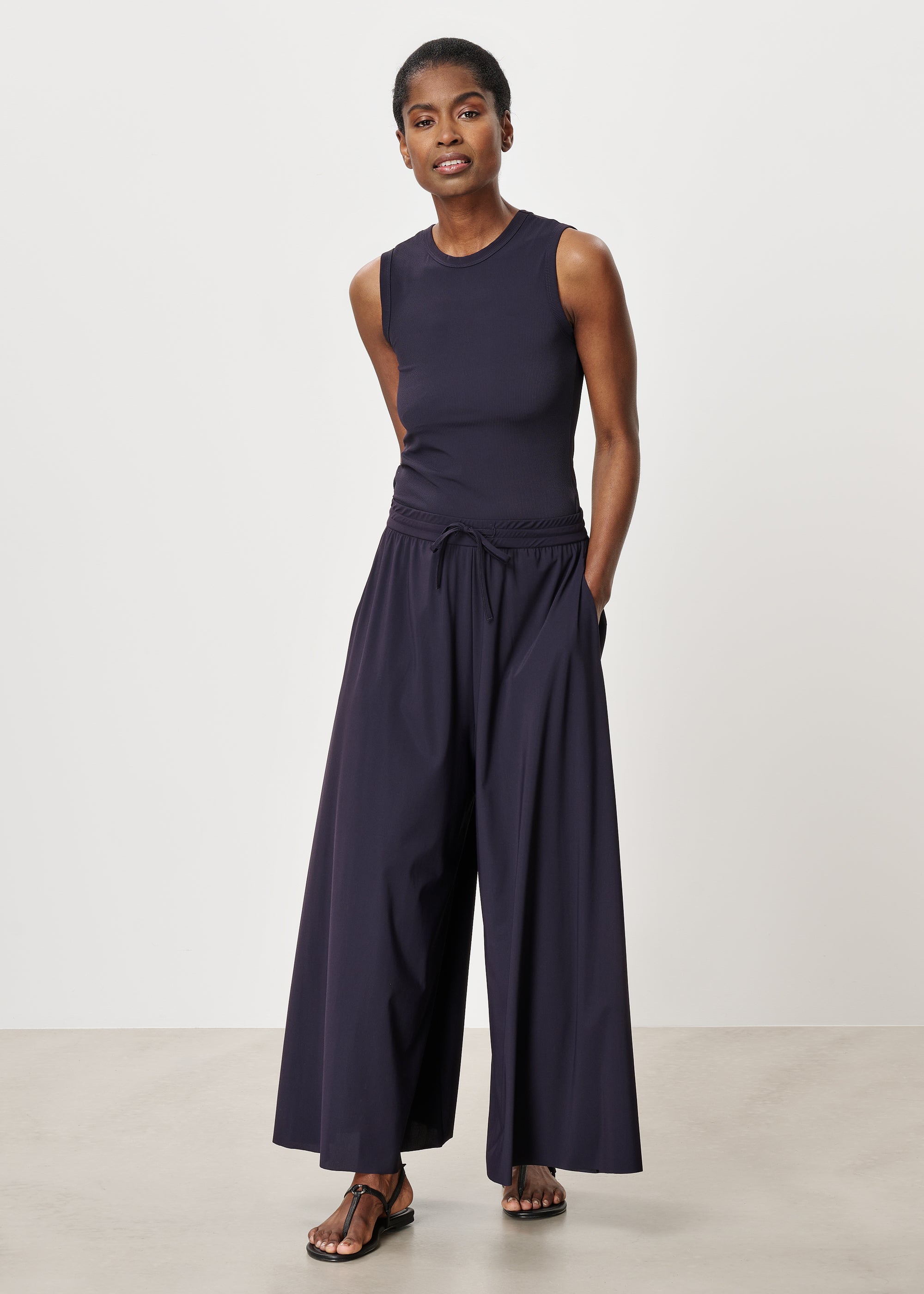 Cut from our light weight Italian TRVL Jersey, with wide palazzo silhouette, the Suki Pants has a comfortable elasticated waistband with drawstrings, side pockets and is designed for a relaxed and casual fit.
