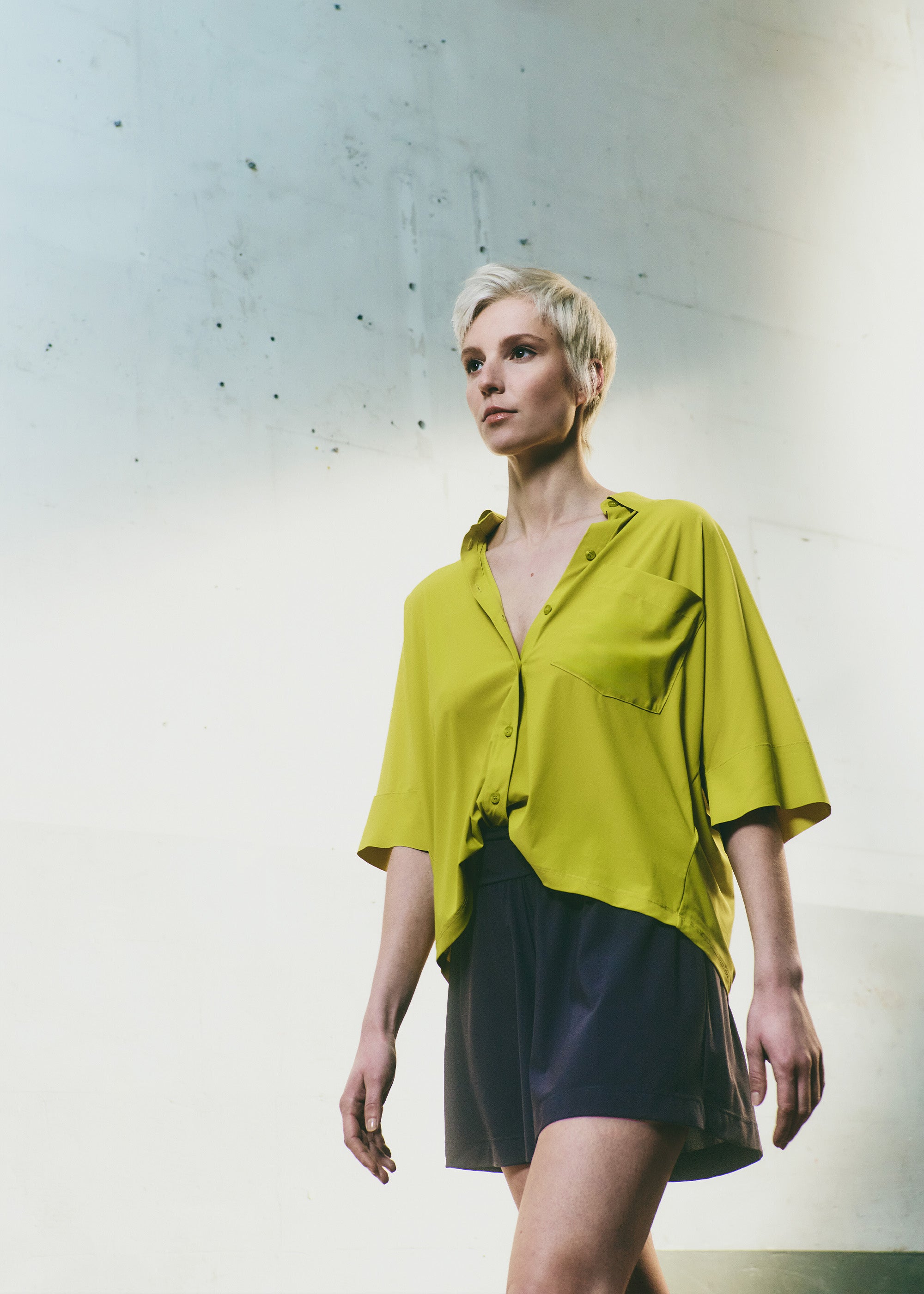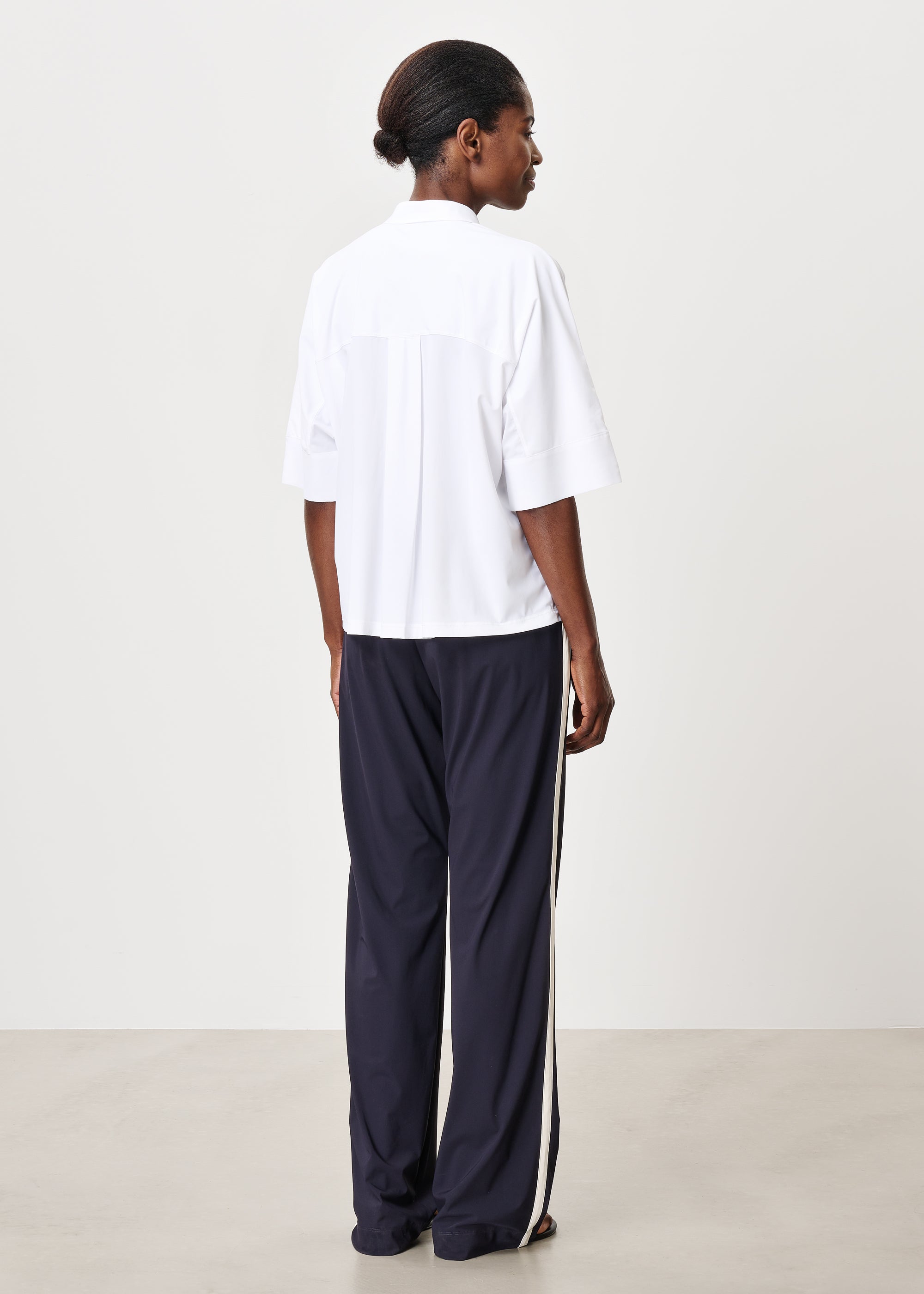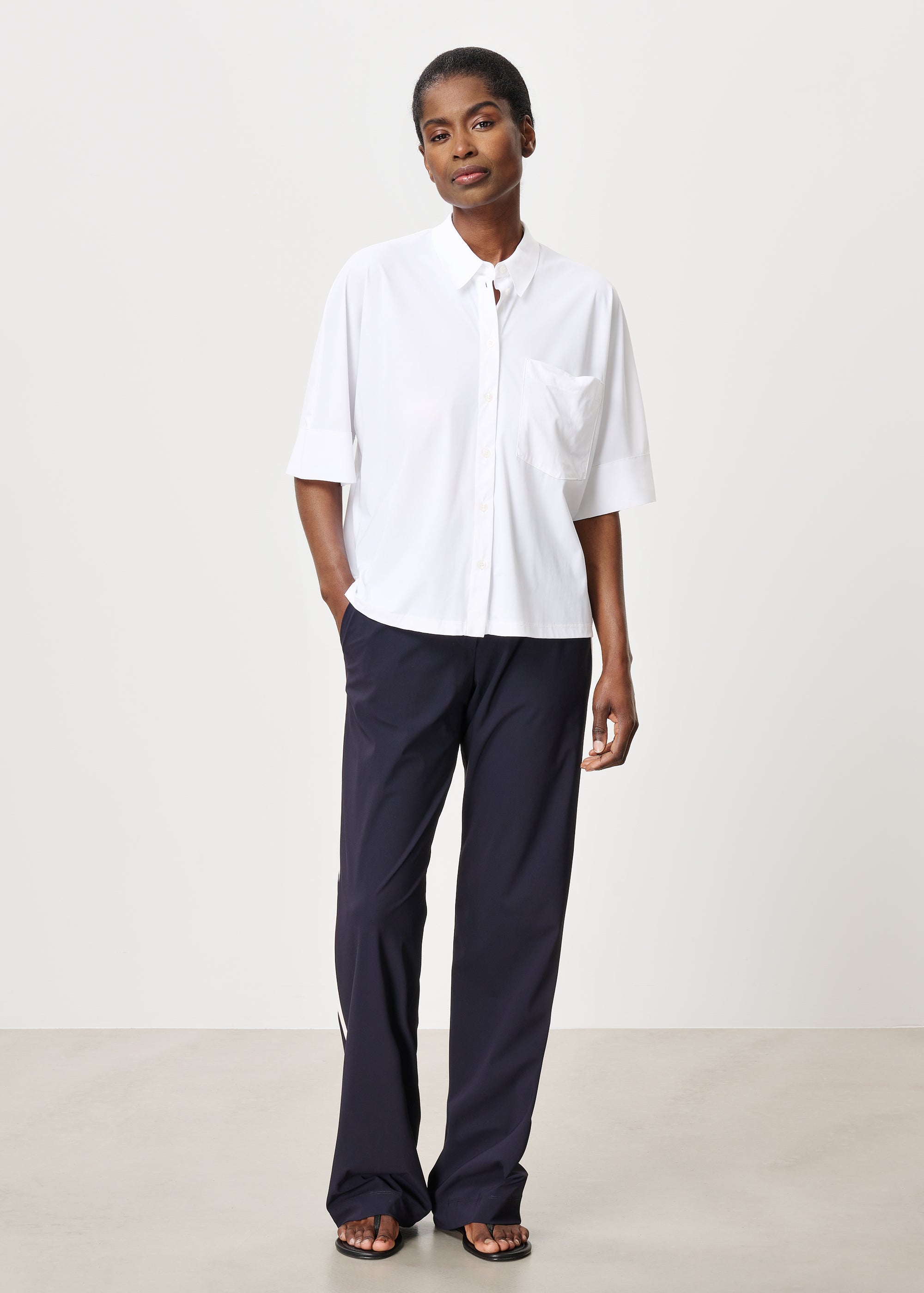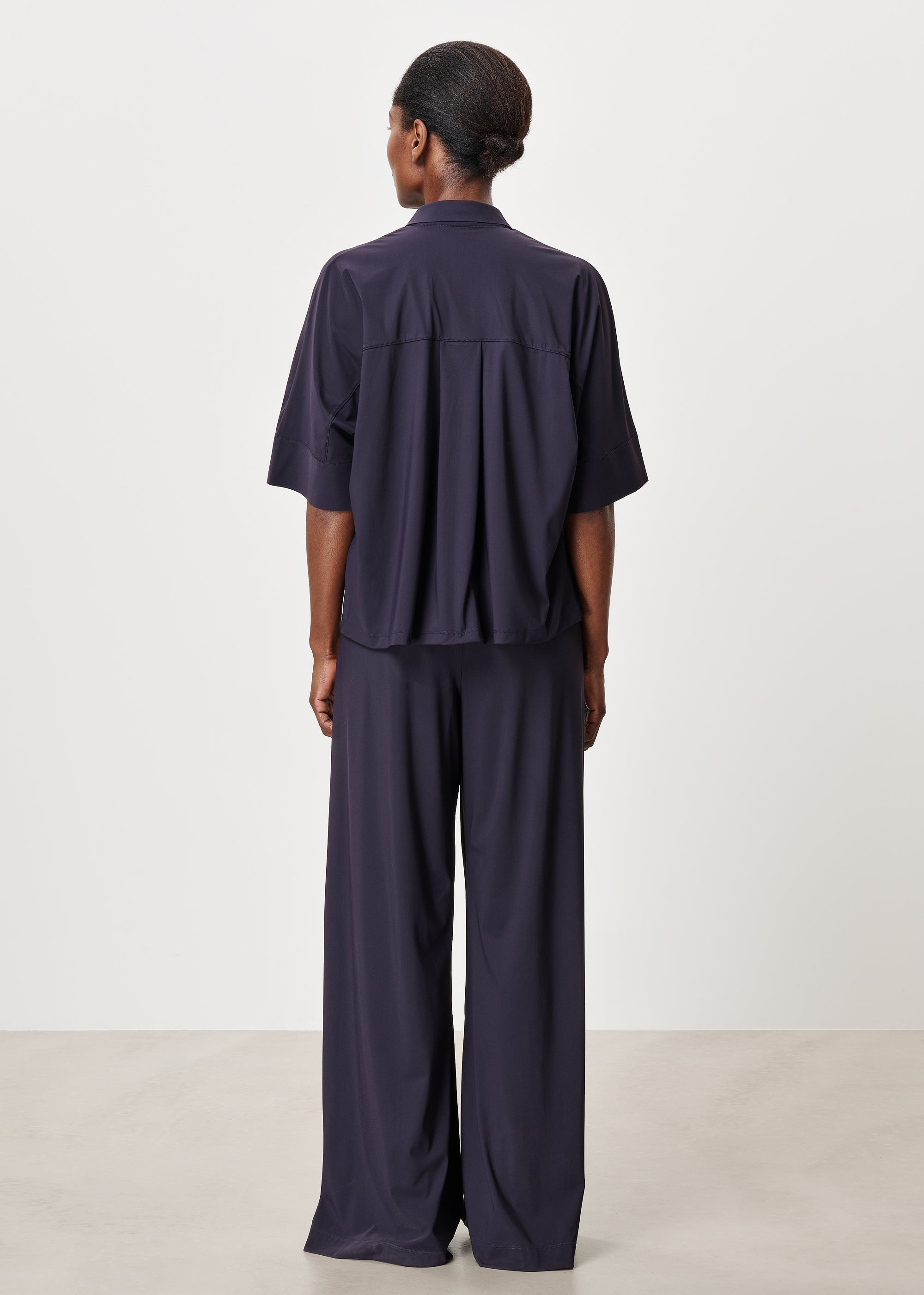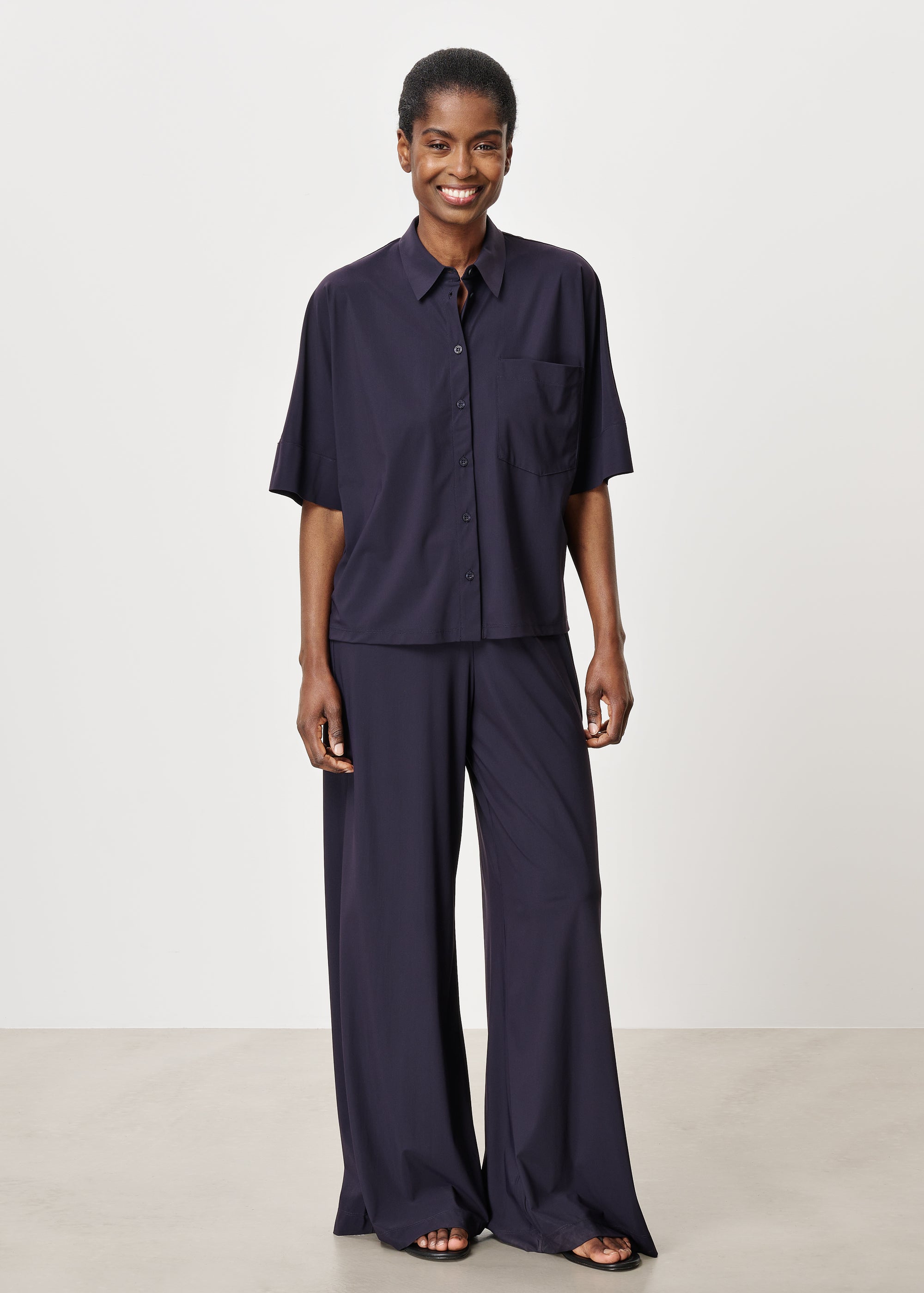 Een klassiek overhemd met een moderne twist en gemaakt van onze lichtgewicht Italiaanse TRVL Jersey. Het Amara Shirt heeft een klassieke kraag en knoopsluiting op het voorpand. Met opgestikte zak aan de voorkant en boxy silhouet. Opgerolde korte mouwen.