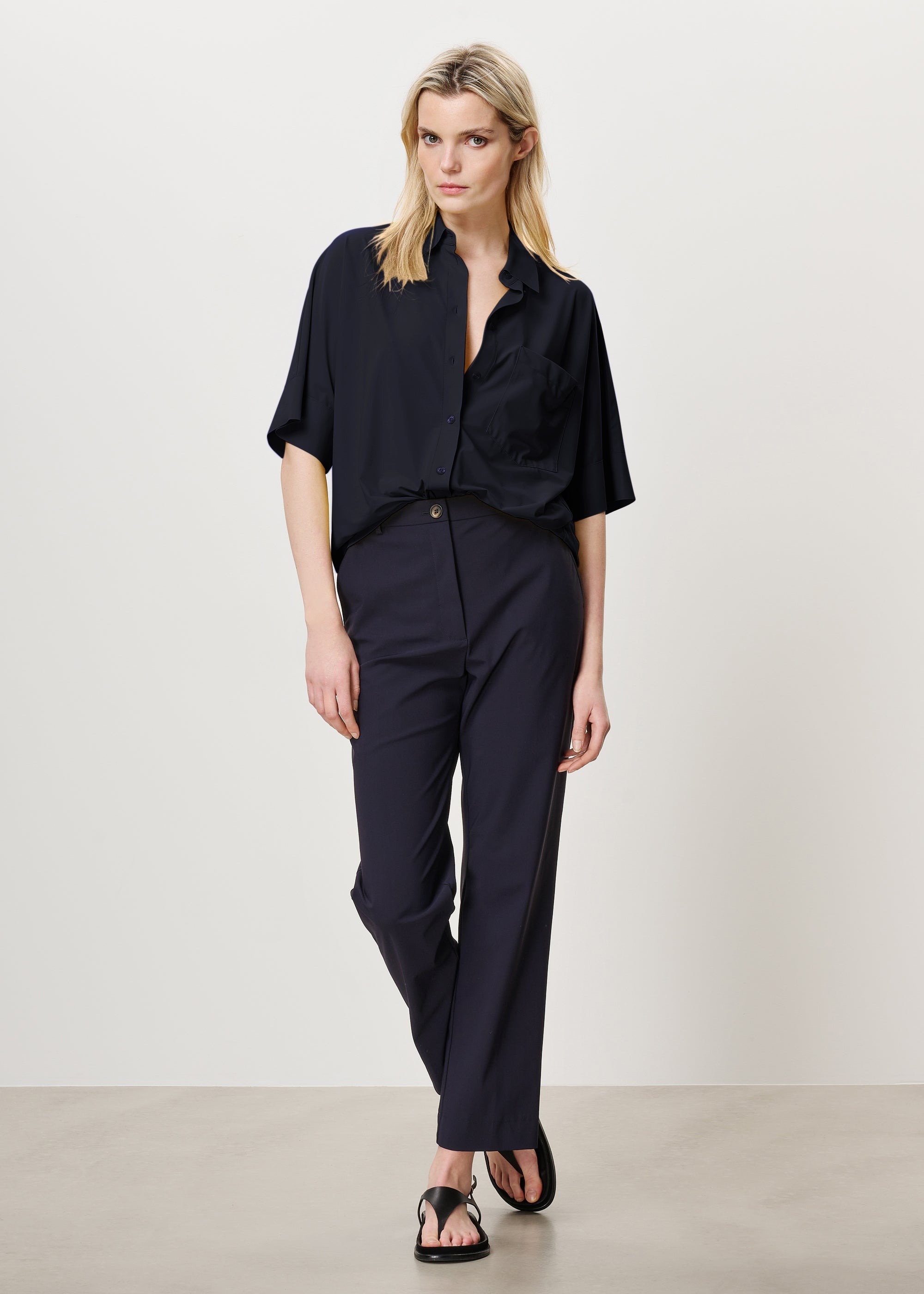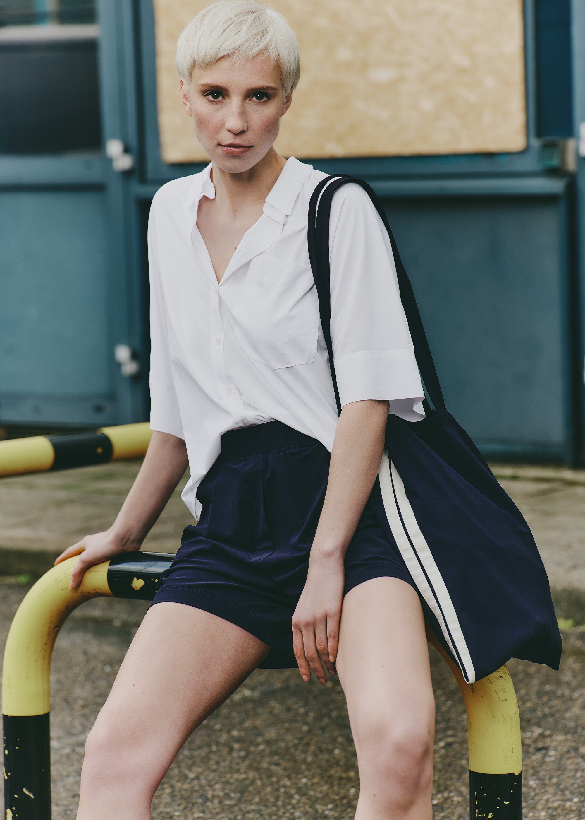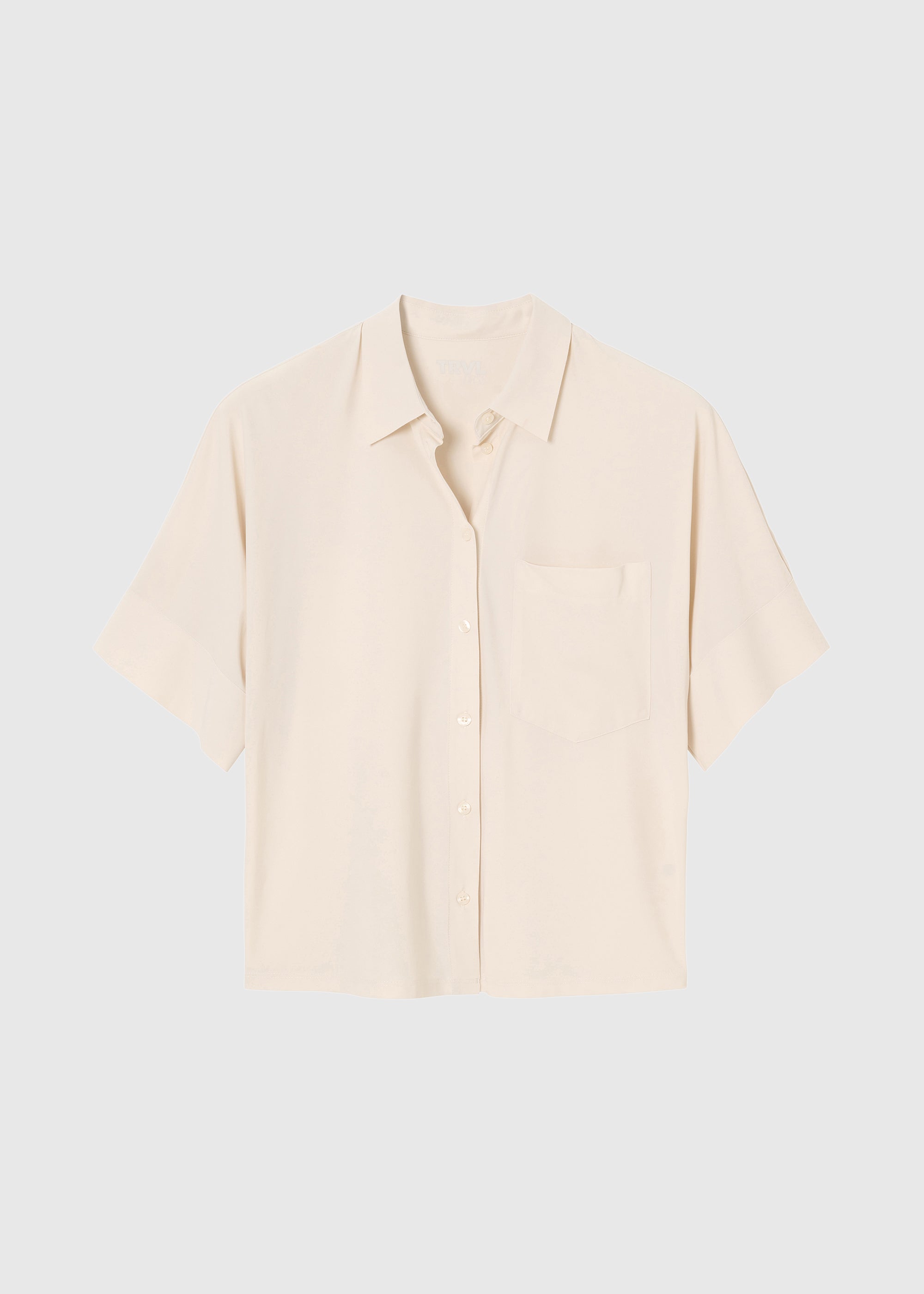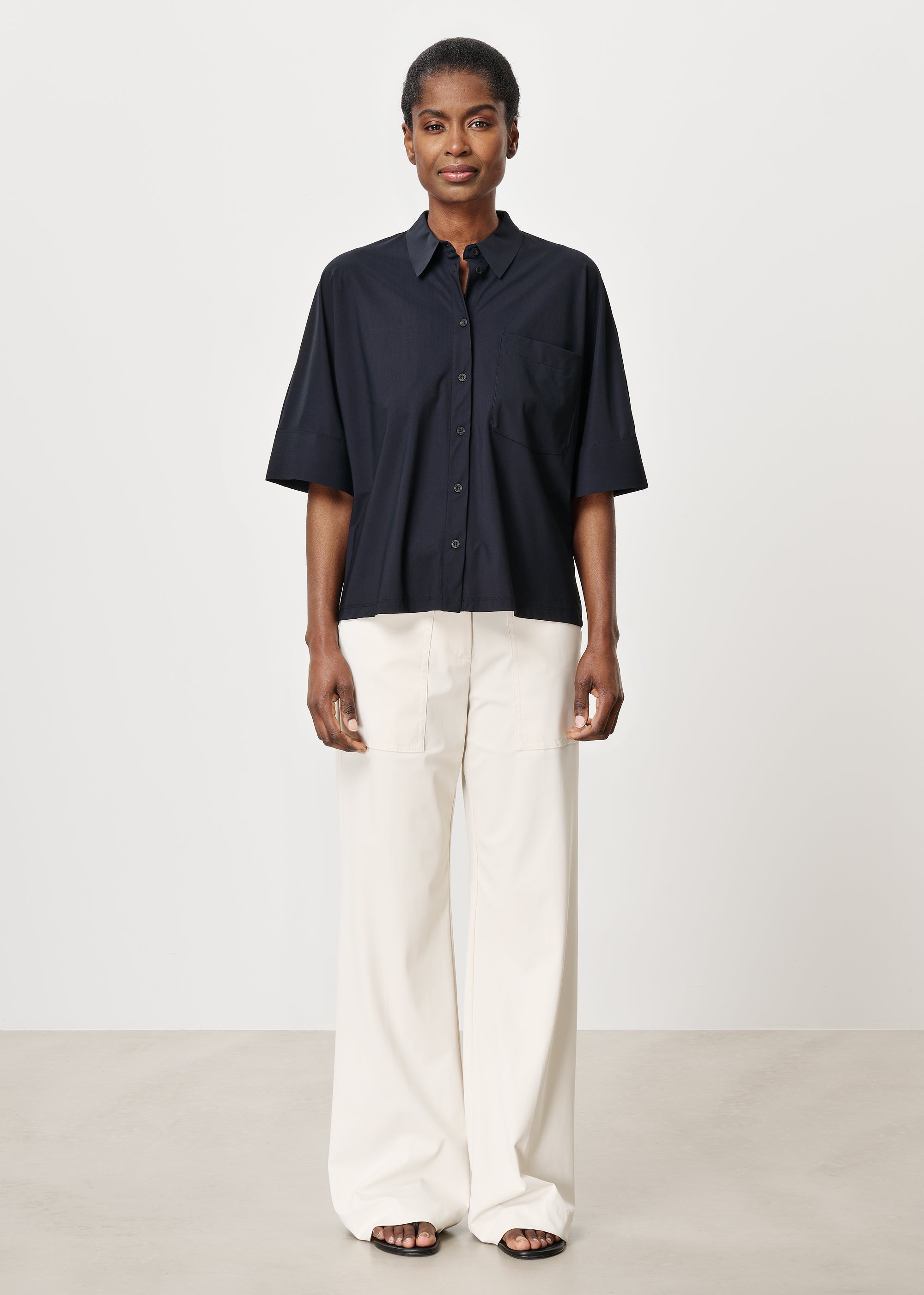 Een klassiek overhemd met een moderne twist en gemaakt van onze lichtgewicht Italiaanse TRVL Jersey. Het Amara Shirt heeft een klassieke kraag en knoopsluiting op het voorpand. Met opgestikte zak aan de voorkant en boxy silhouet. Opgerolde korte mouwen.