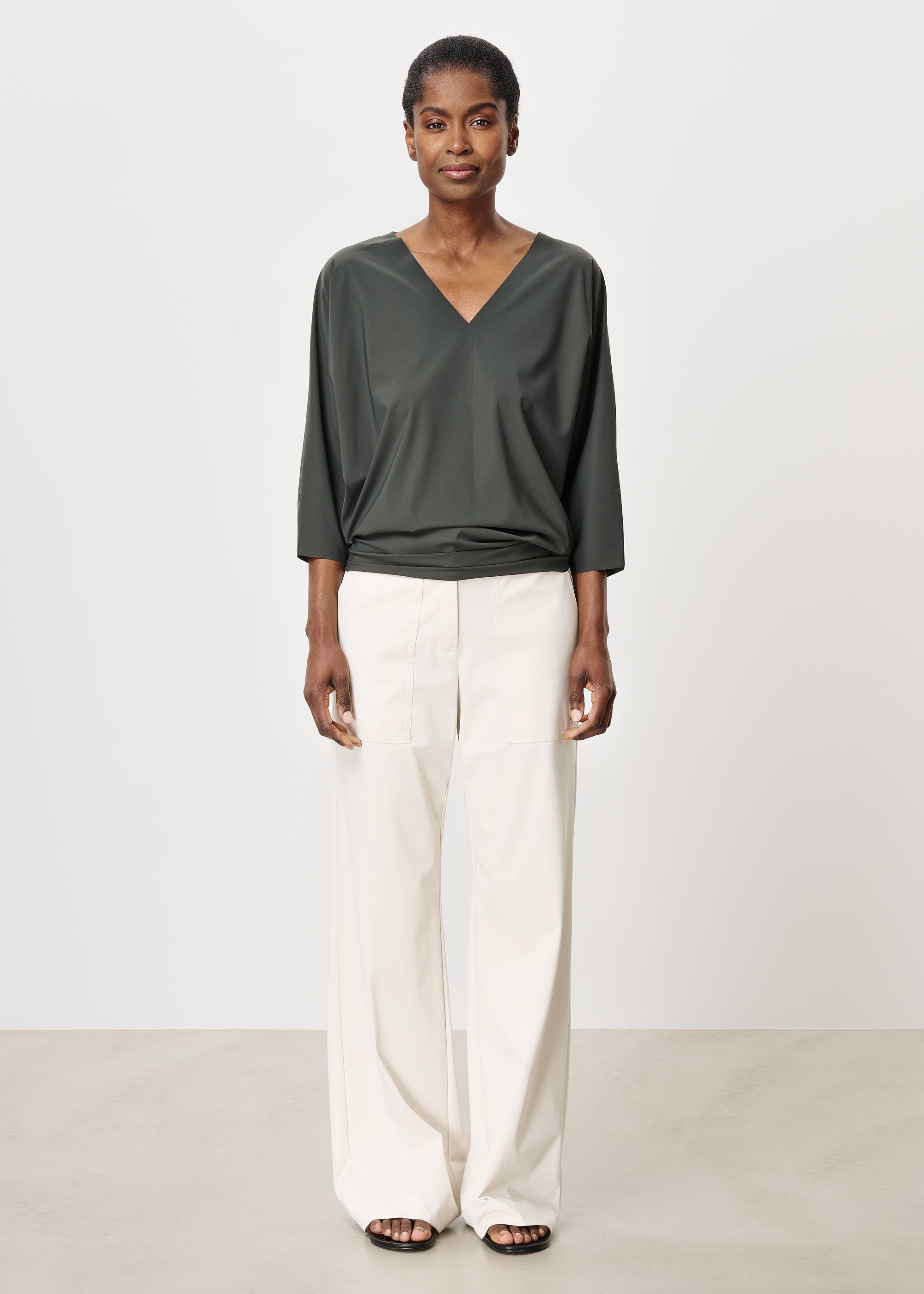 - Vleermuismouwen en een V-hals voor een ultravrouwelijke pasvorm