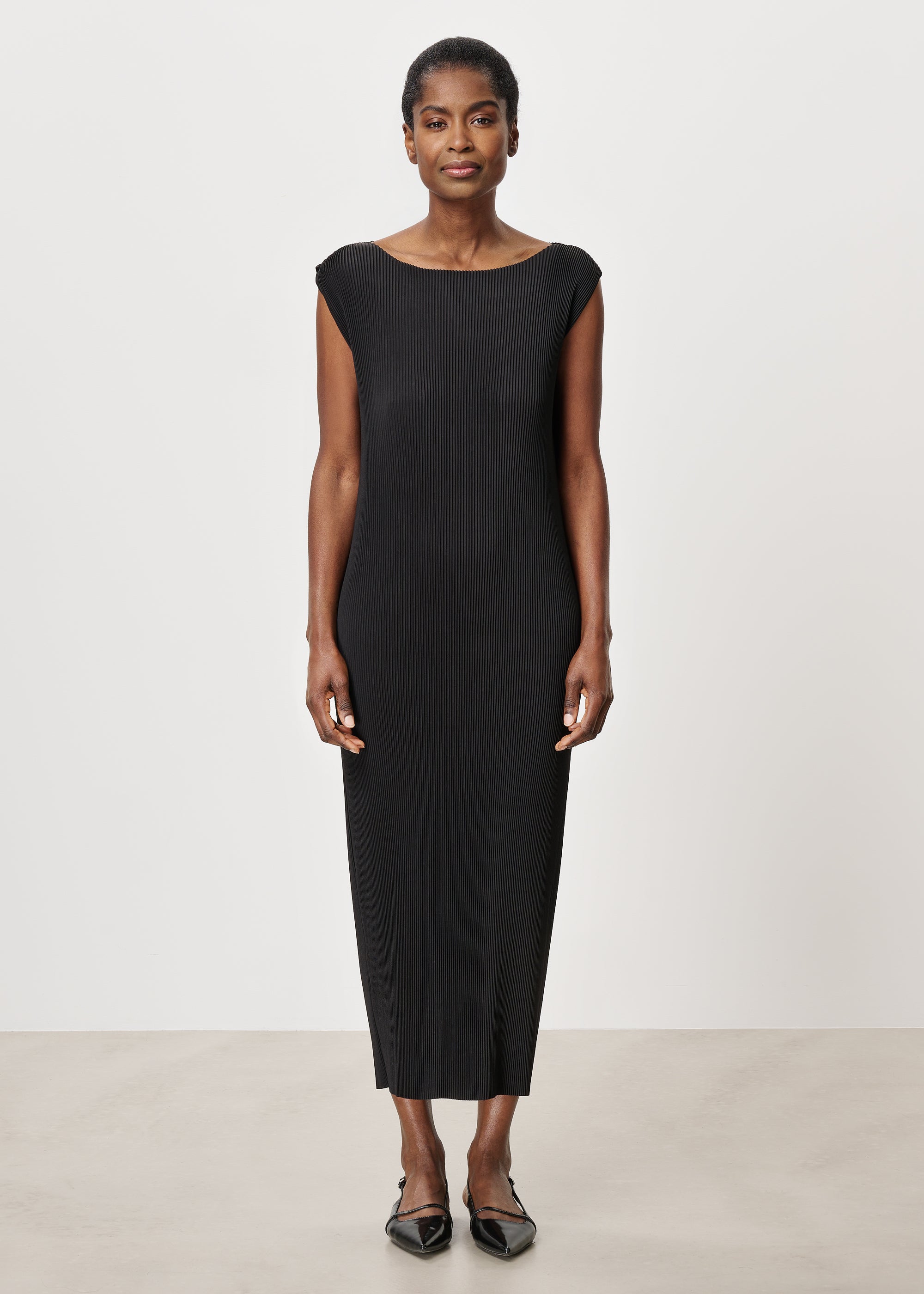 De Cody Dress is gemaakt van een plissé stof, een nieuwe TRVL friendly stof. Deze jurk heeft een straight fit silhouet met een mouwloos ontwerp. Flatterende boothals en raw cut afwerking. De plissé stof heeft een flexibele pasvorm op de borst, taille en heupen en is een absolute musthave.