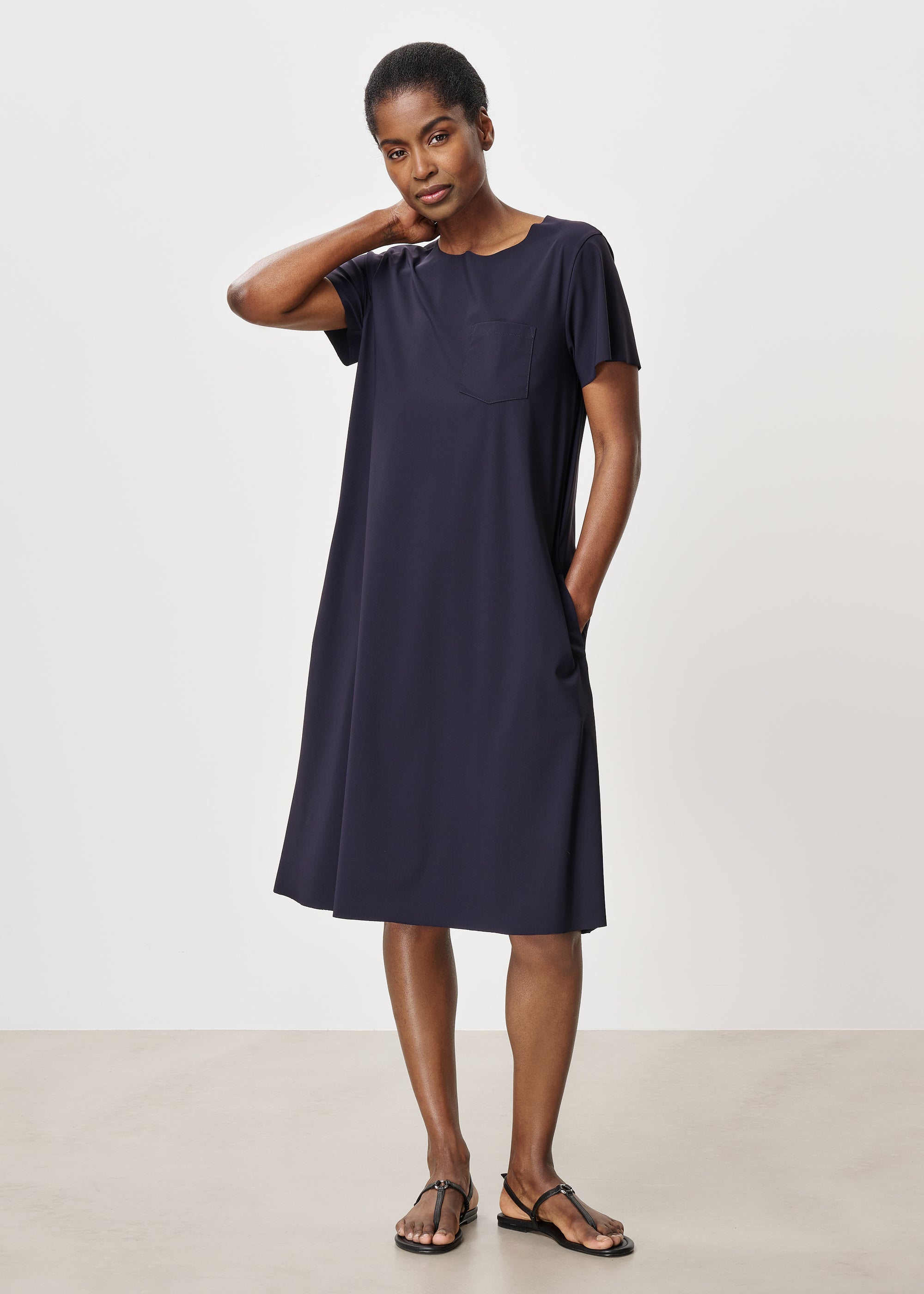 De Crissy Tennis Dress is gemaakt van onze middelzware Italiaanse TRVL Jersey en is een eenvoudige, maar stijlvolle en moderne versie van onze tennisjurk. Raw cut afwerking bij de hals, mouwen en zoom. De lengte valt net op de knie en hij heeft een flatterende halslijn. Onzichtbare zakken in de zijnaden.
