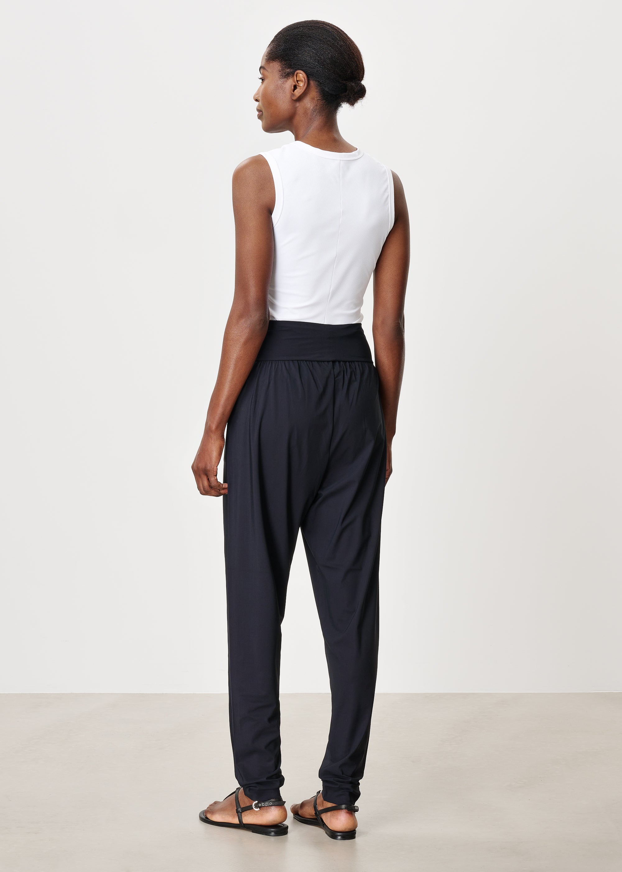 Tapered broek met losse pasvorm, ideaal voor op reis. Blinde zakken in de naden voor een relaxte en comfortabele look. Combineer met de Aki top voor een coole, stijlvolle en complete look. Verkrijgbaar in Ink Blue en Black.