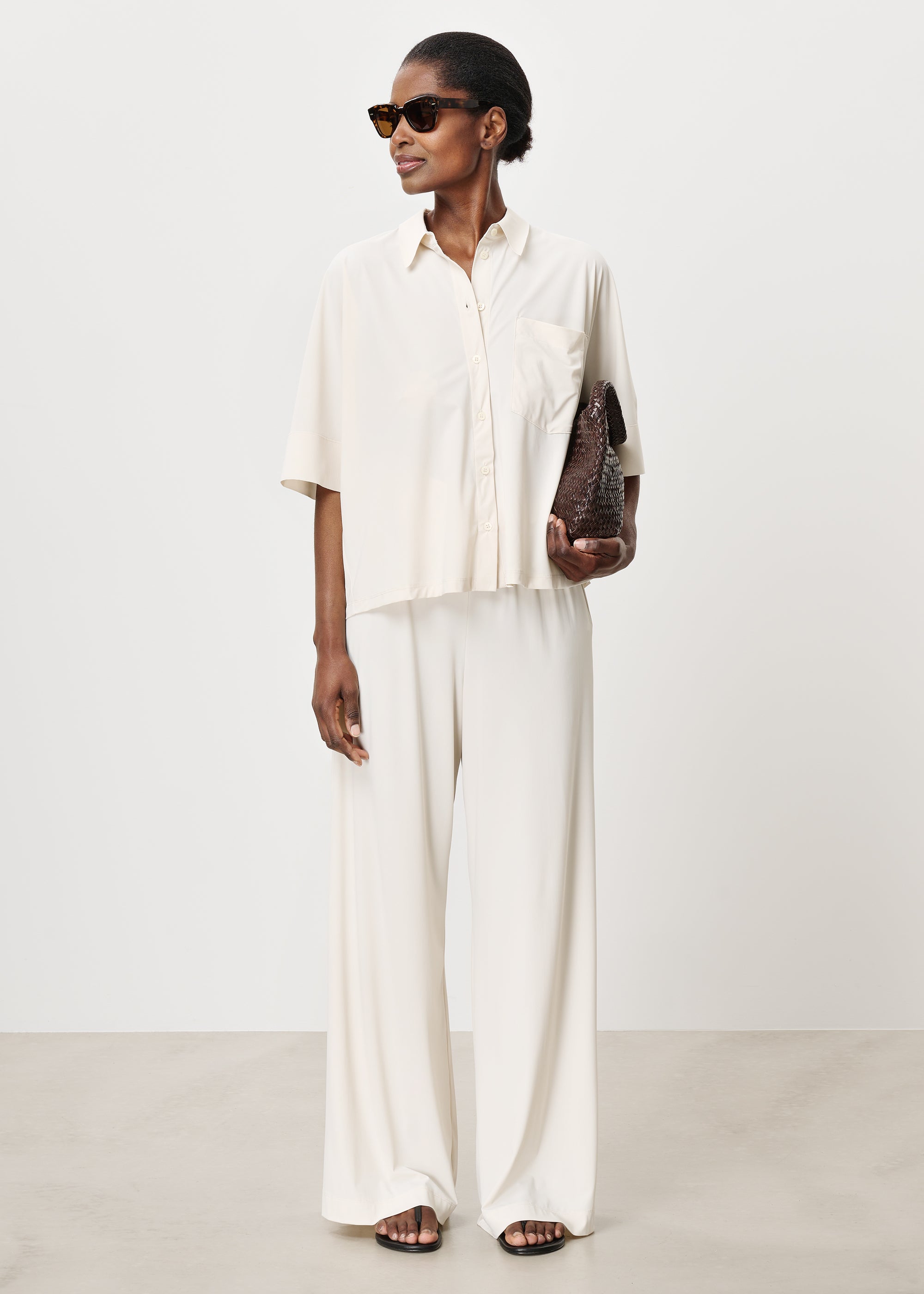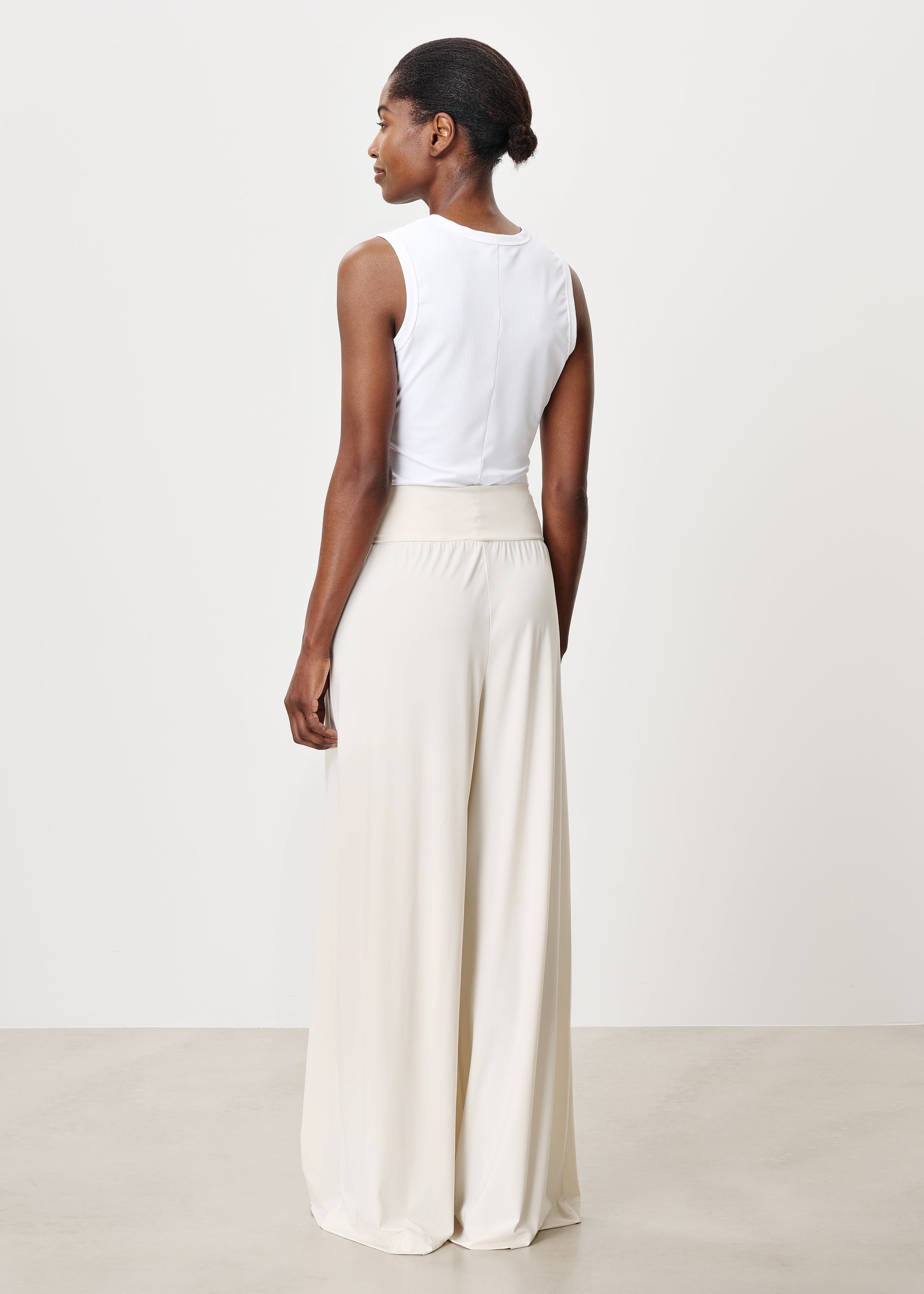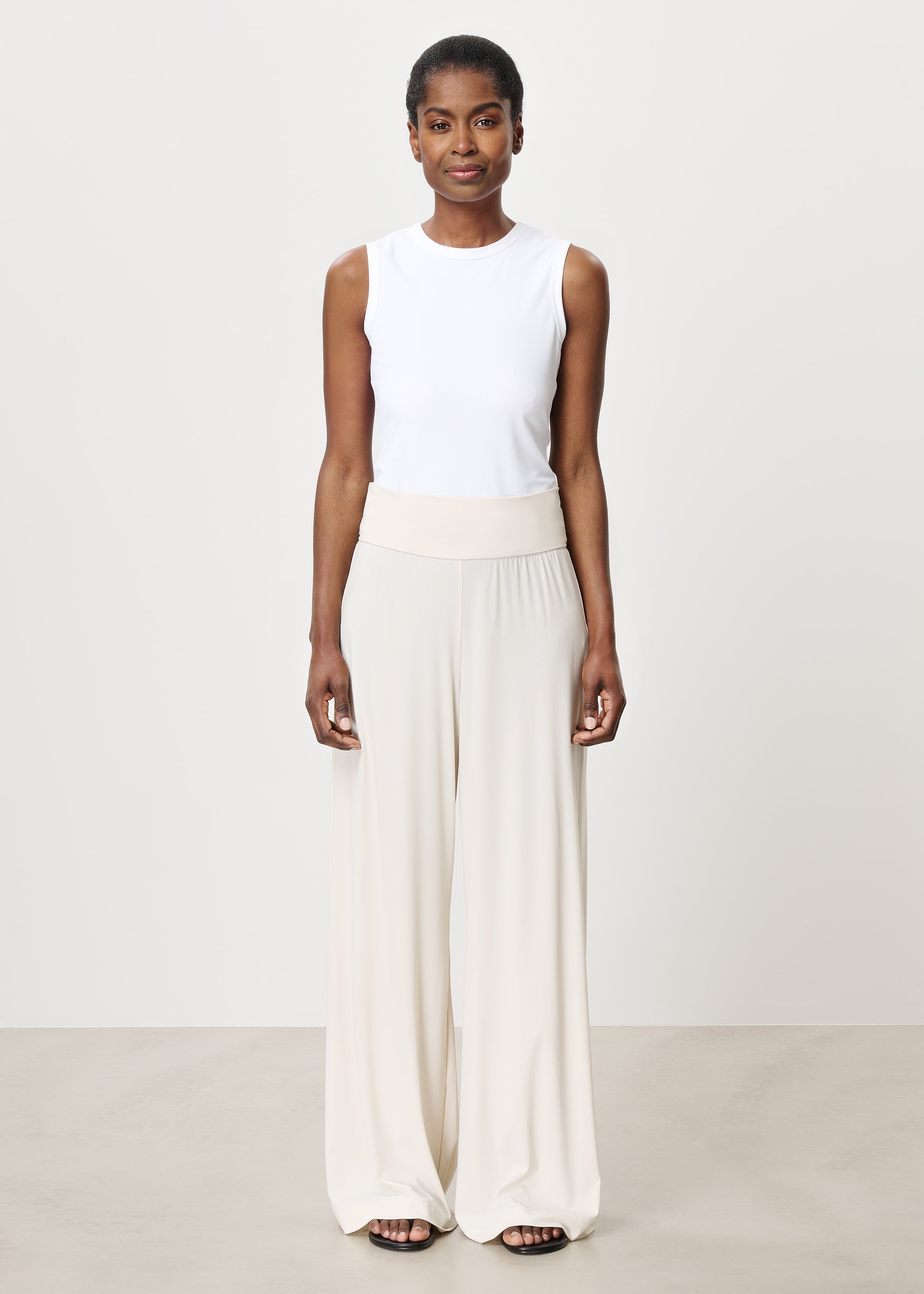Wijde palazzo-broek in Italiaanse, lichtgewicht TRVL jersey. De omgevouwen tailleband zorgt voor een perfecte pasvorm en het ultieme comfort.