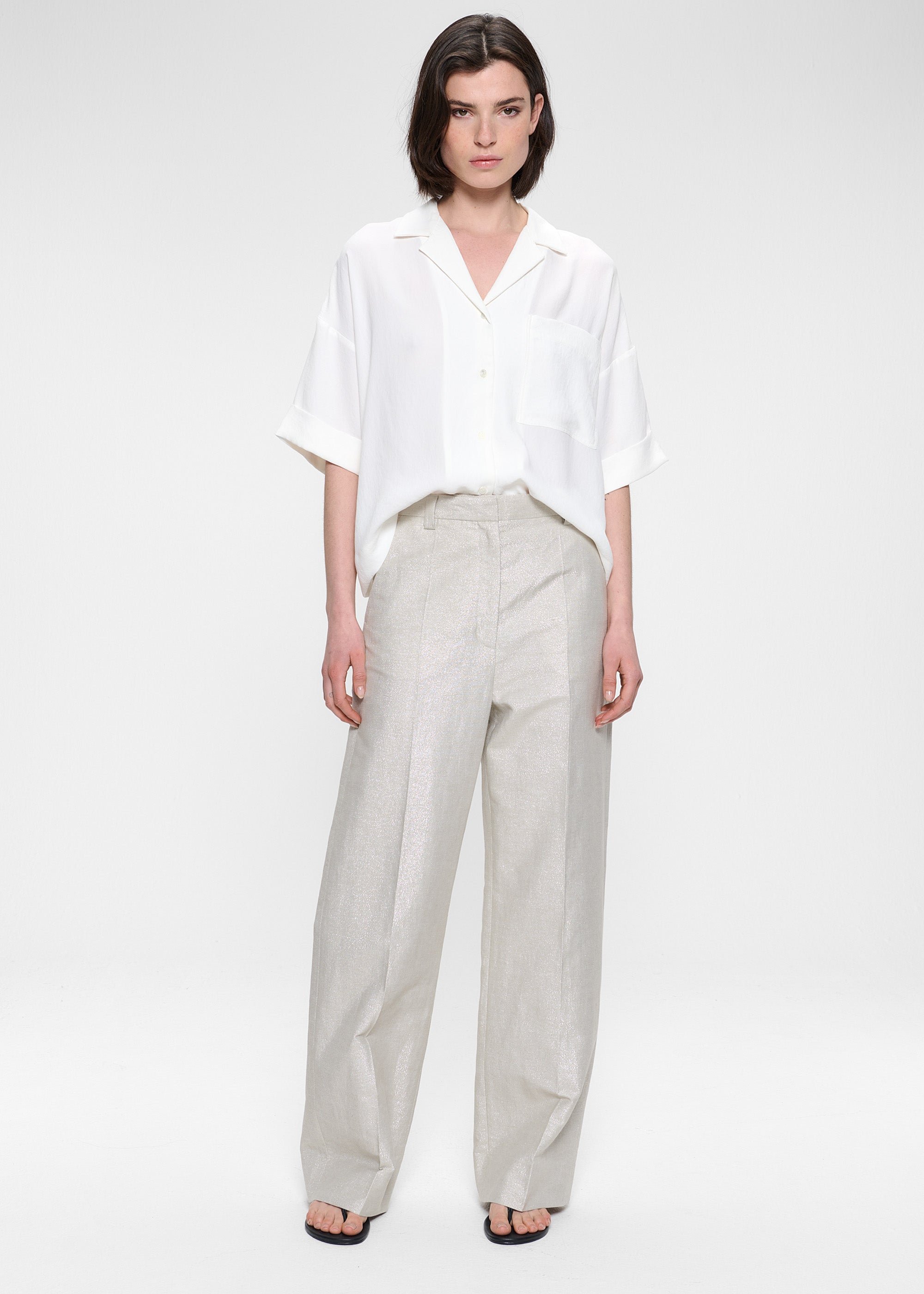 Réalisée dans notre tissu emblématique, le crêpe fluide, cette chemise présente une silhouette classique et des détails raffinés. Cette chemise peut être portée fermée, ou ouverte comme une veste, revers cousu dans le col tracé avec des petits boutons sur la patte de boutonnage. Poche plaquée devant et manches courtes.