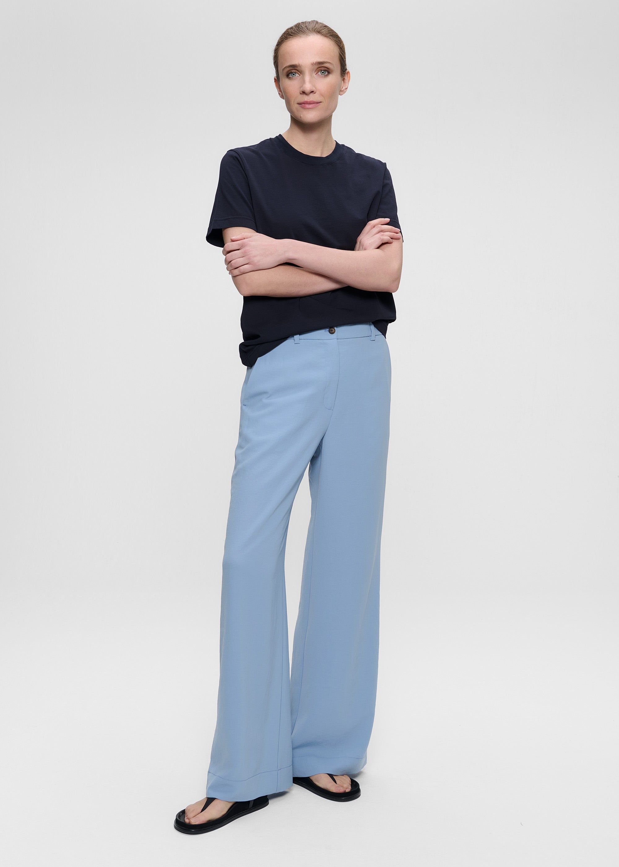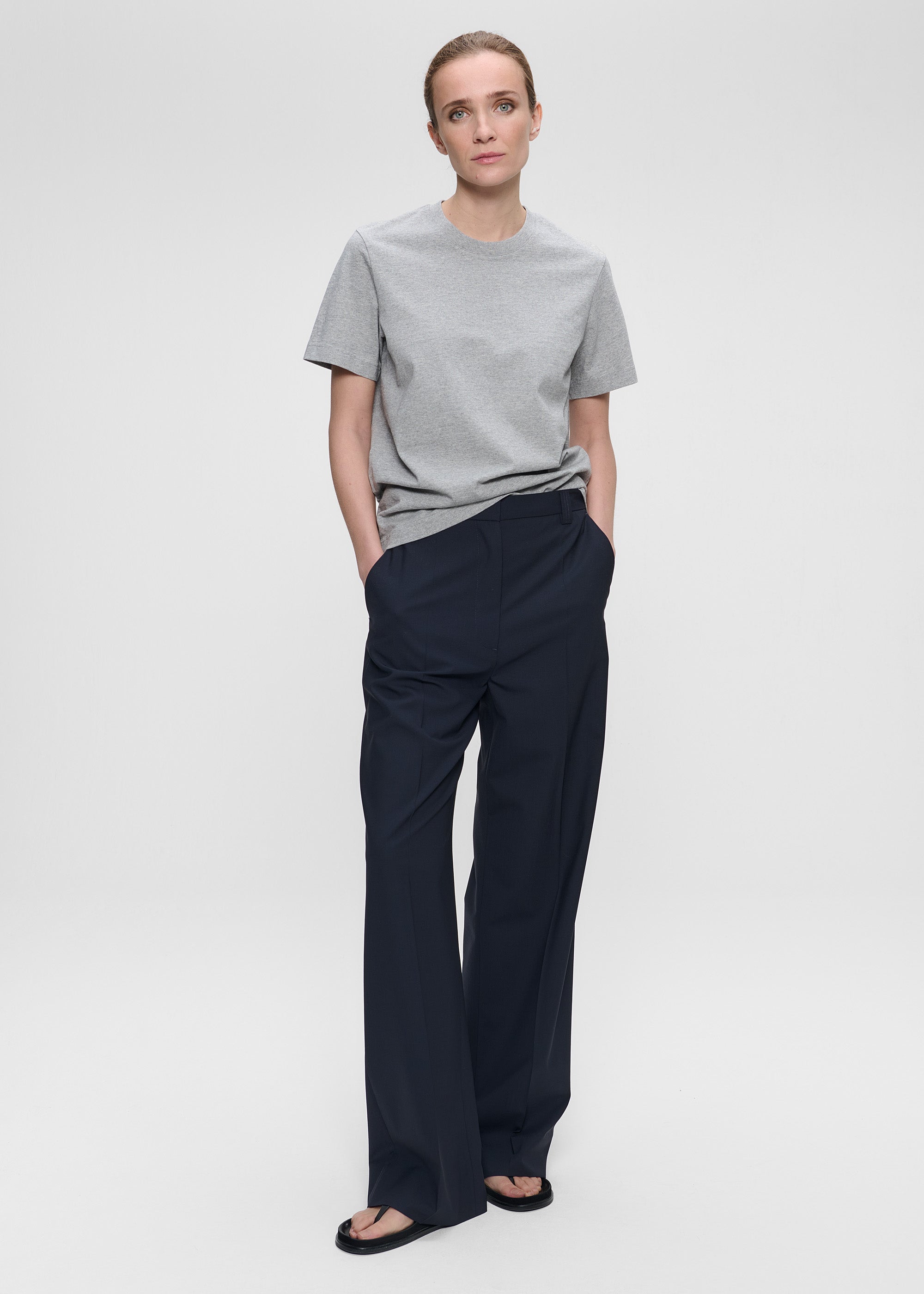 - Dubbelgestikte details bij de hals, mouwen en zoom