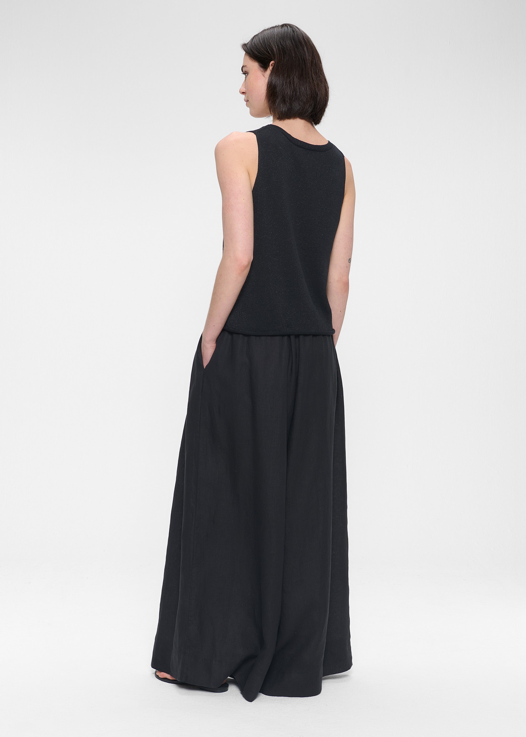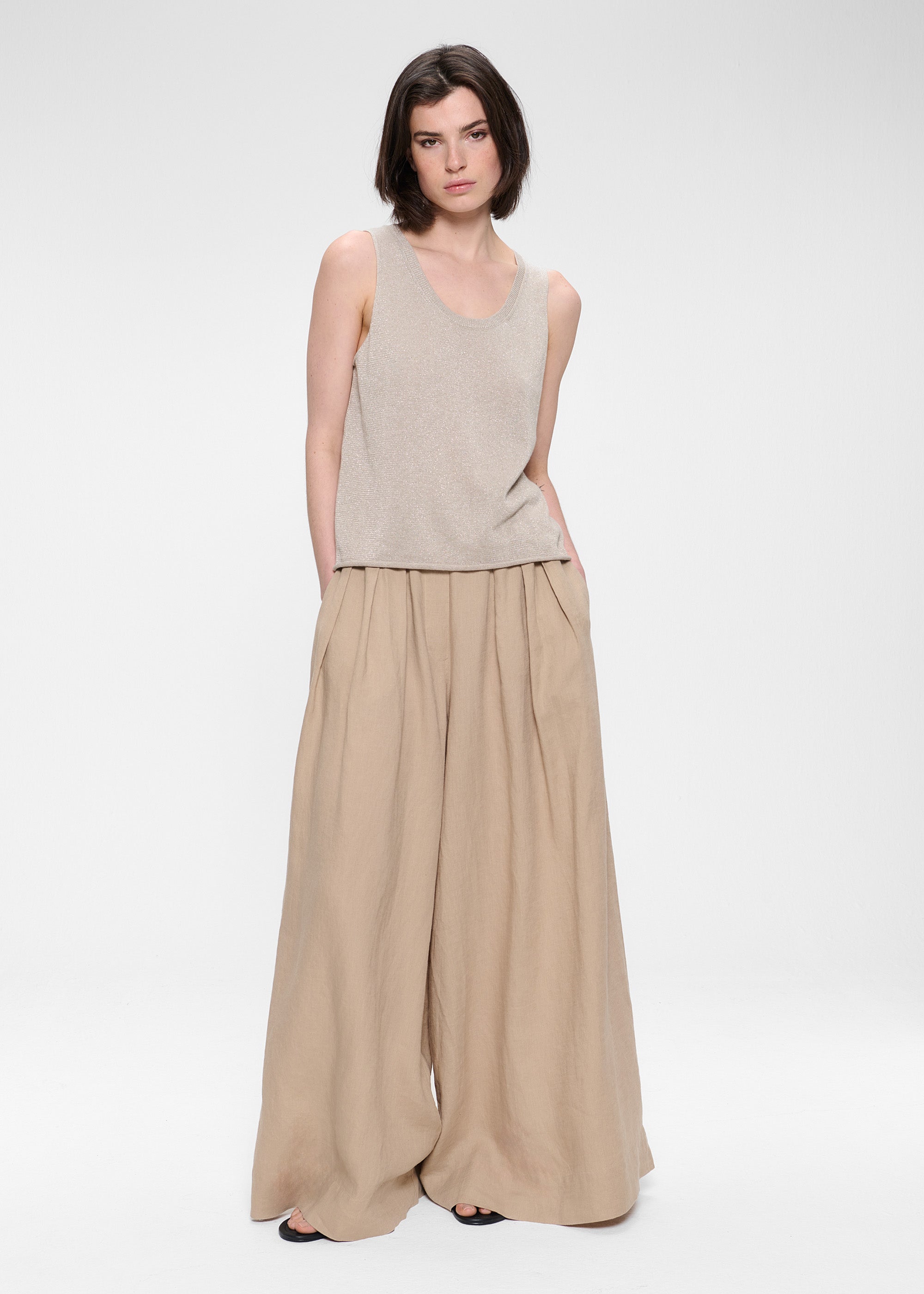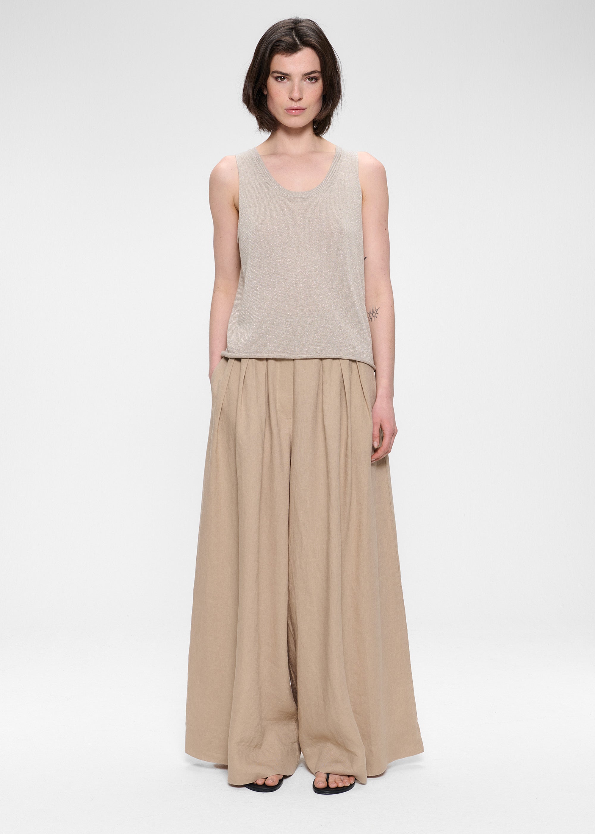 Haut sans manches en tricot dans un mélange de coton et lin doux et chatoyant. Encolure bateau flatteuse. Ourlet côtelé et coupe naturelle.