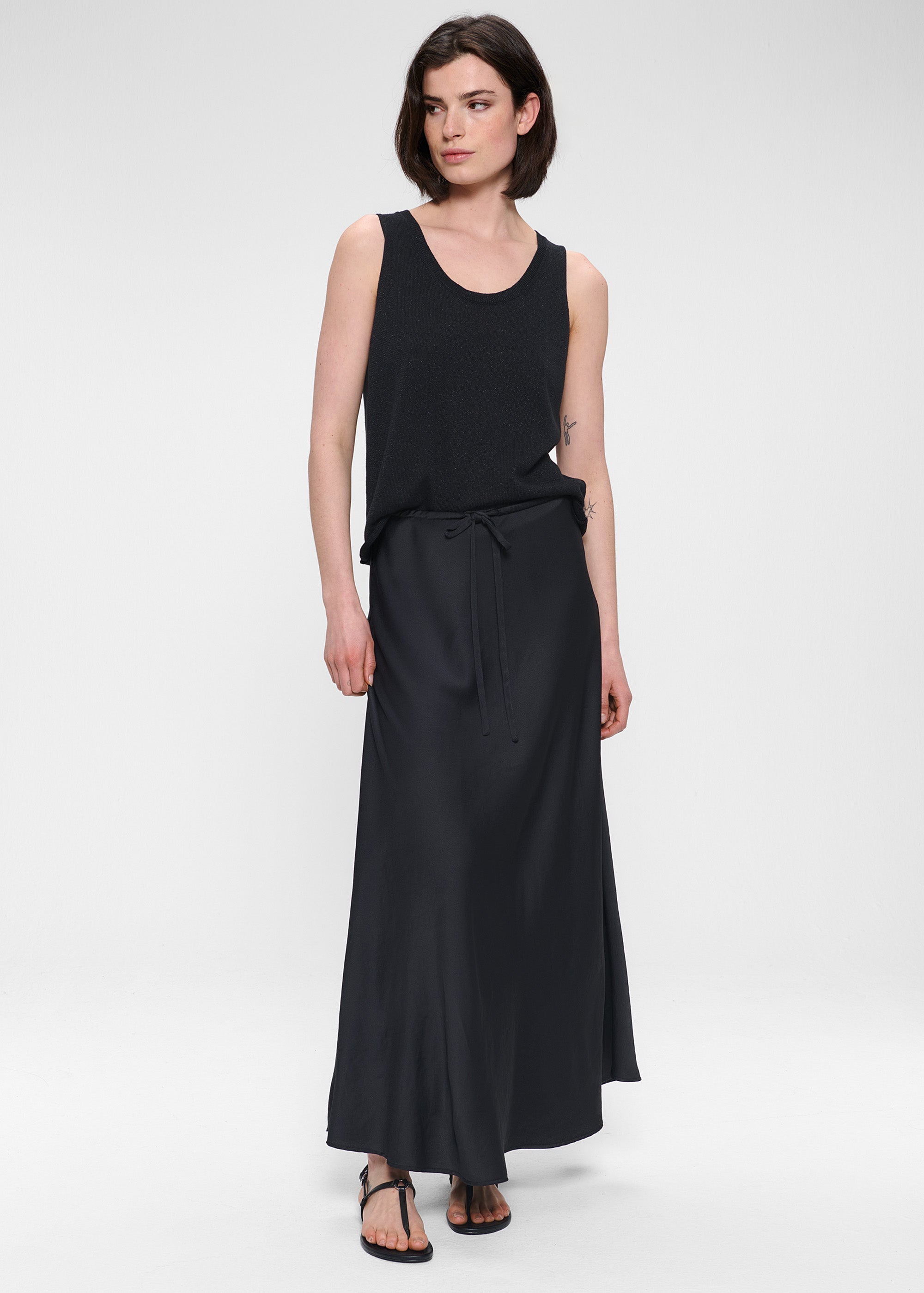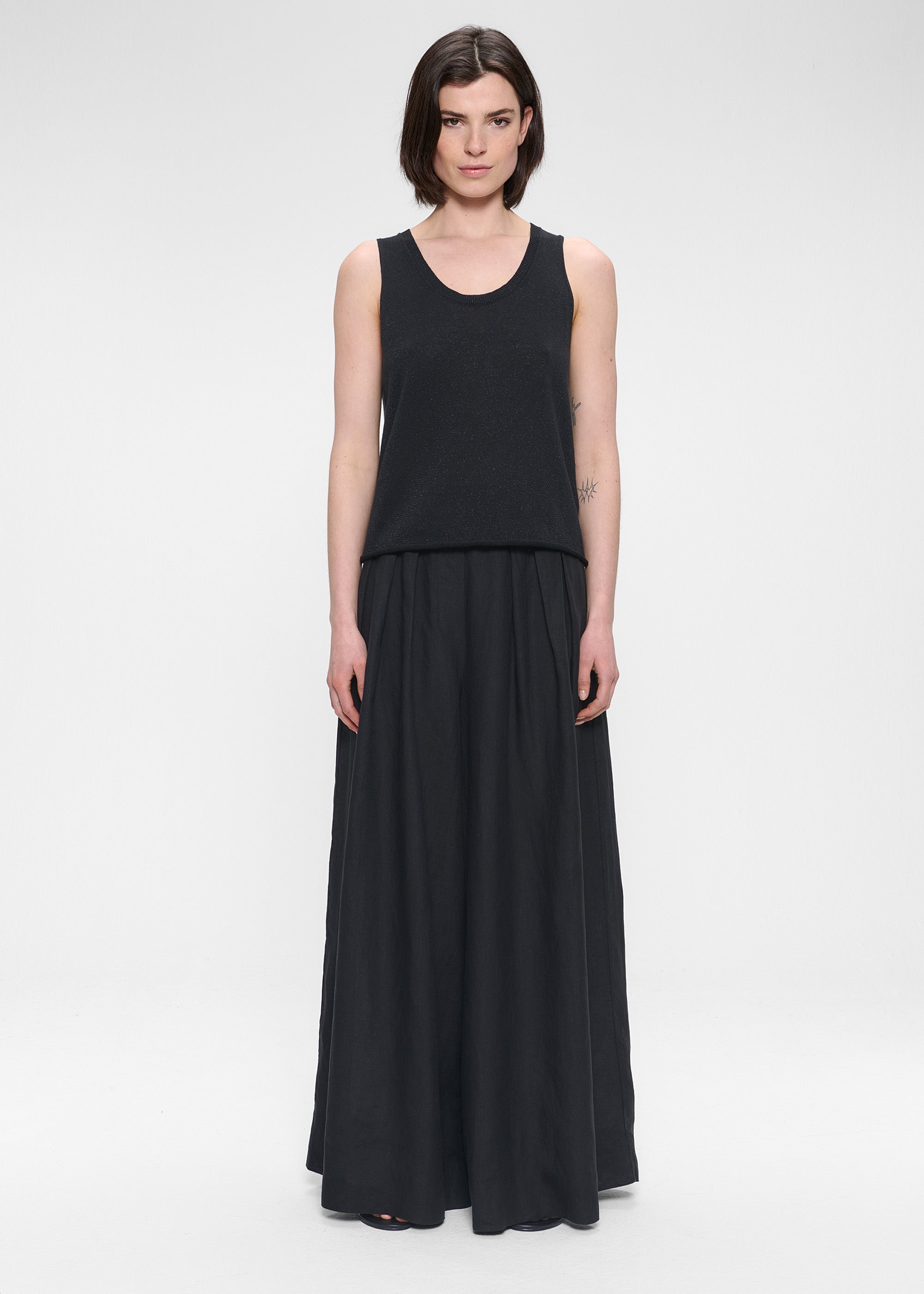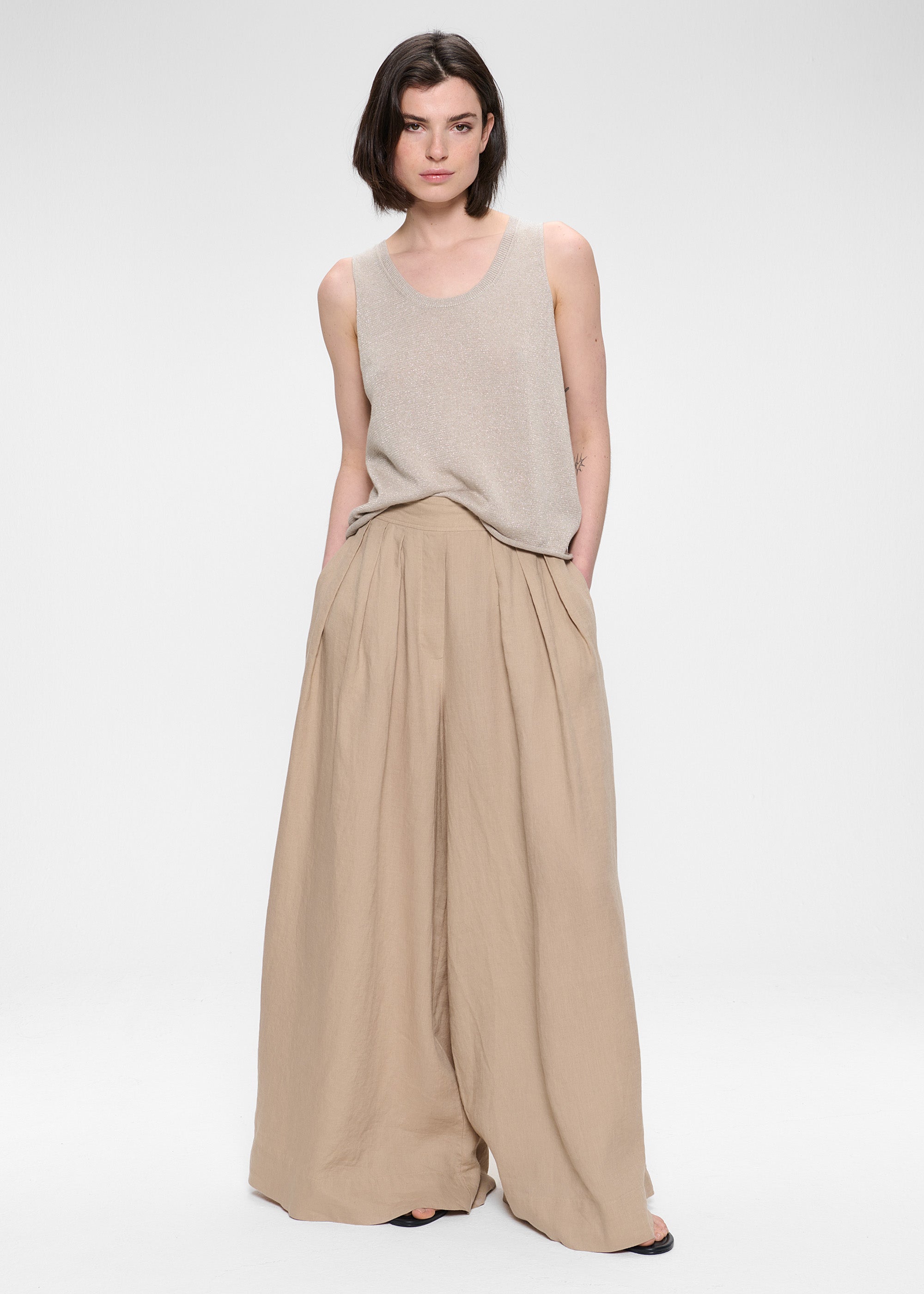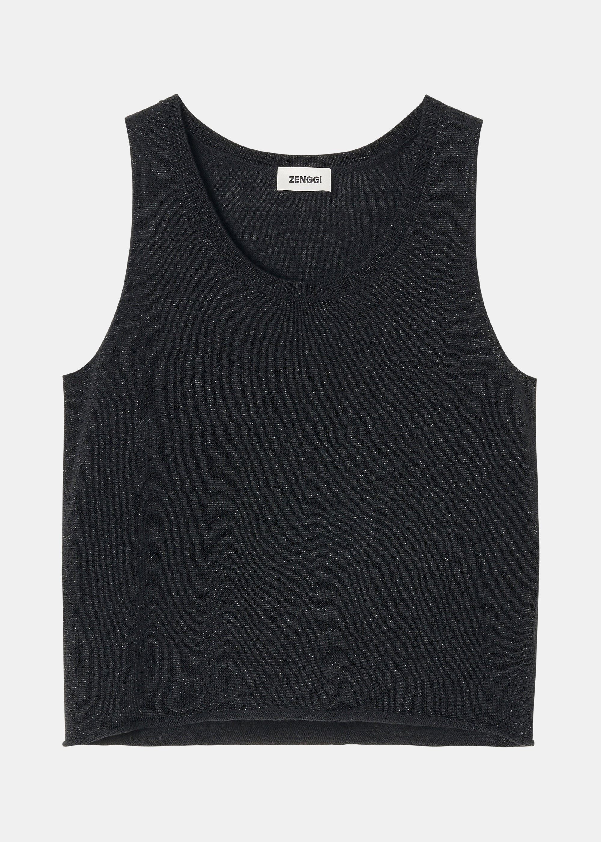 Haut sans manches en tricot dans un mélange de coton et lin doux et chatoyant. Encolure bateau flatteuse. Ourlet côtelé et coupe naturelle.
