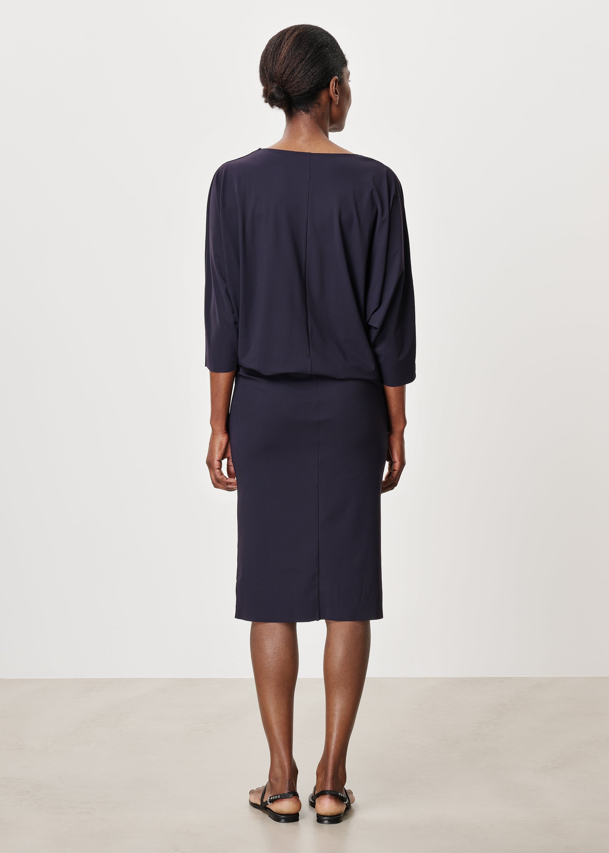 Lange jurk van lichtgewicht TRVL jersey met vleermuismouwen.