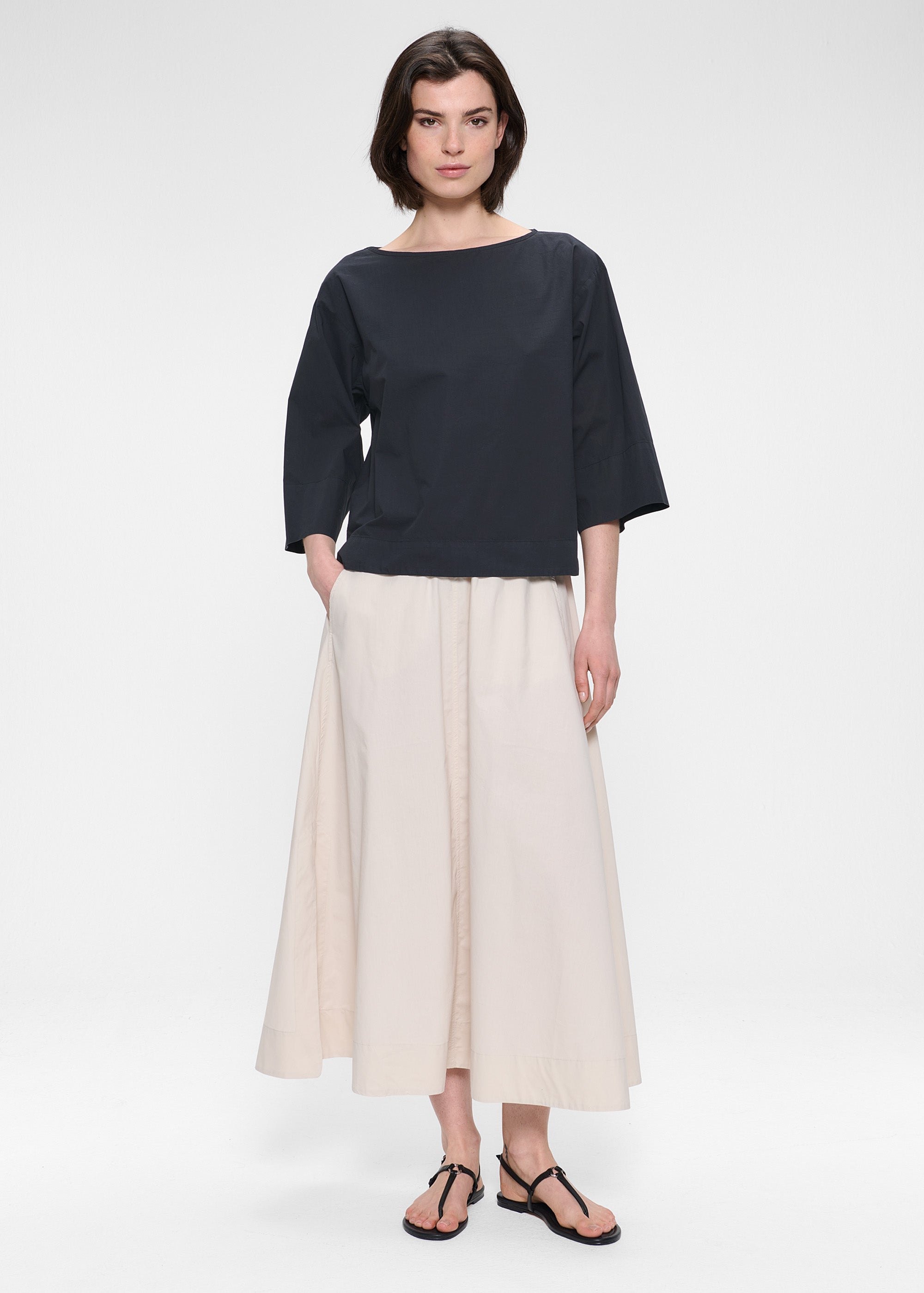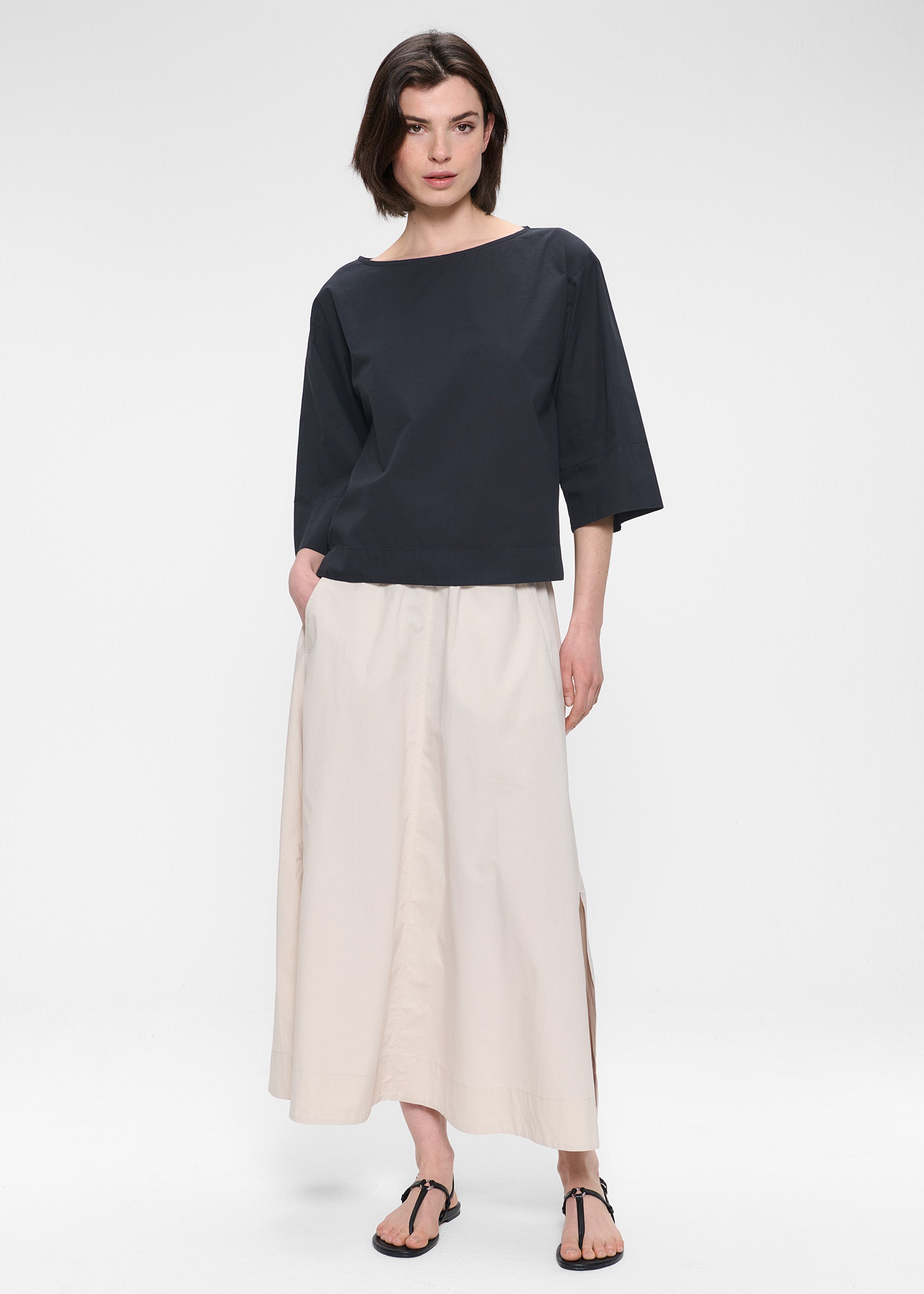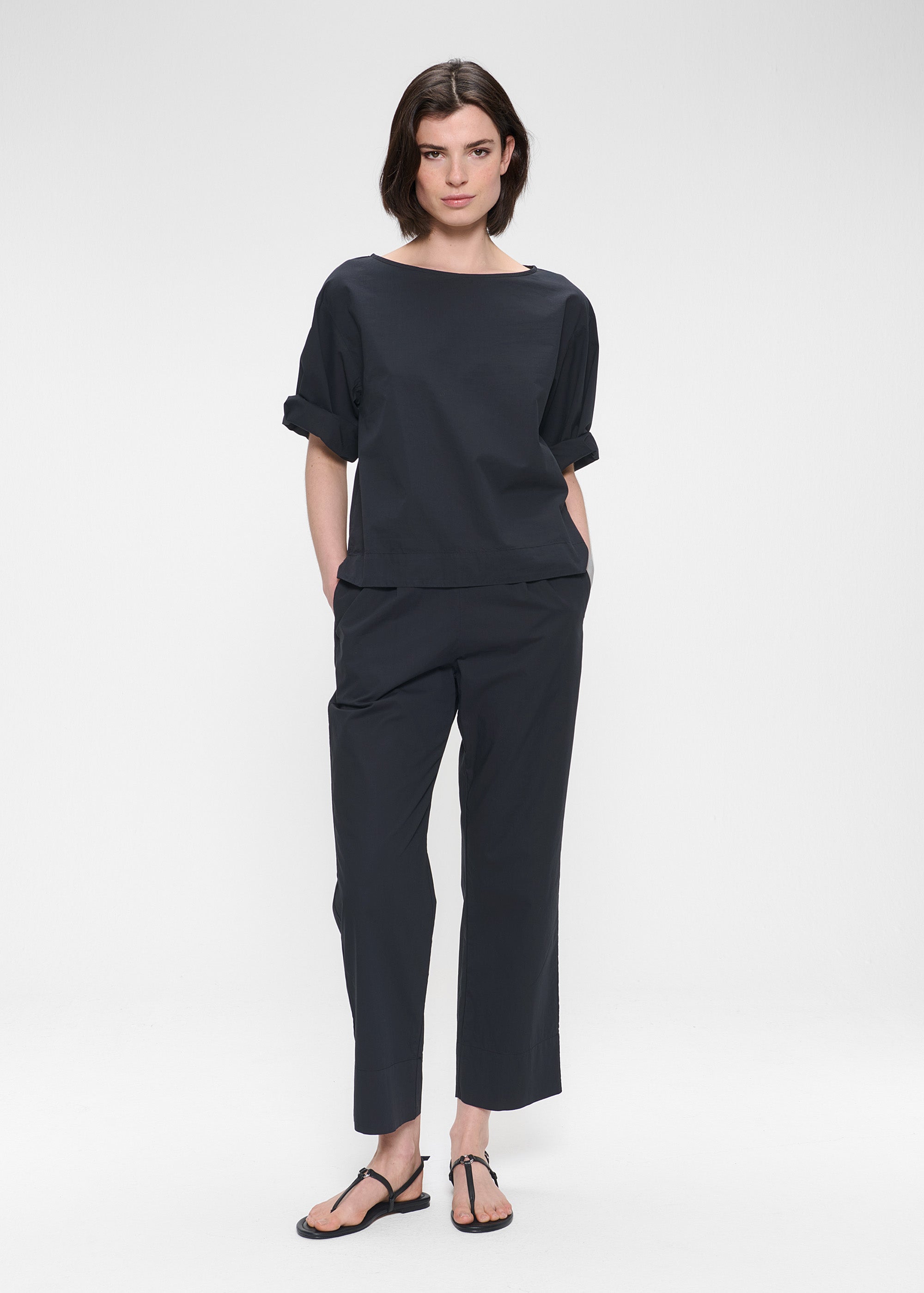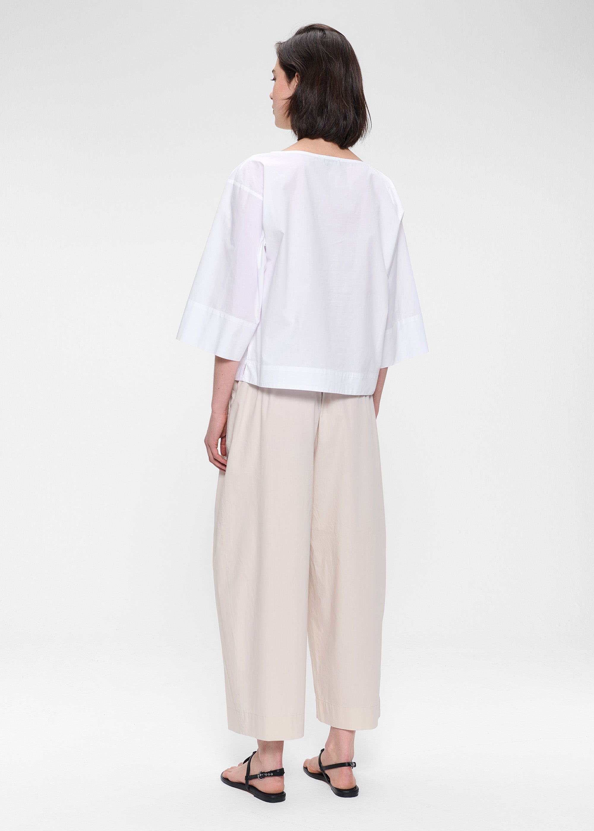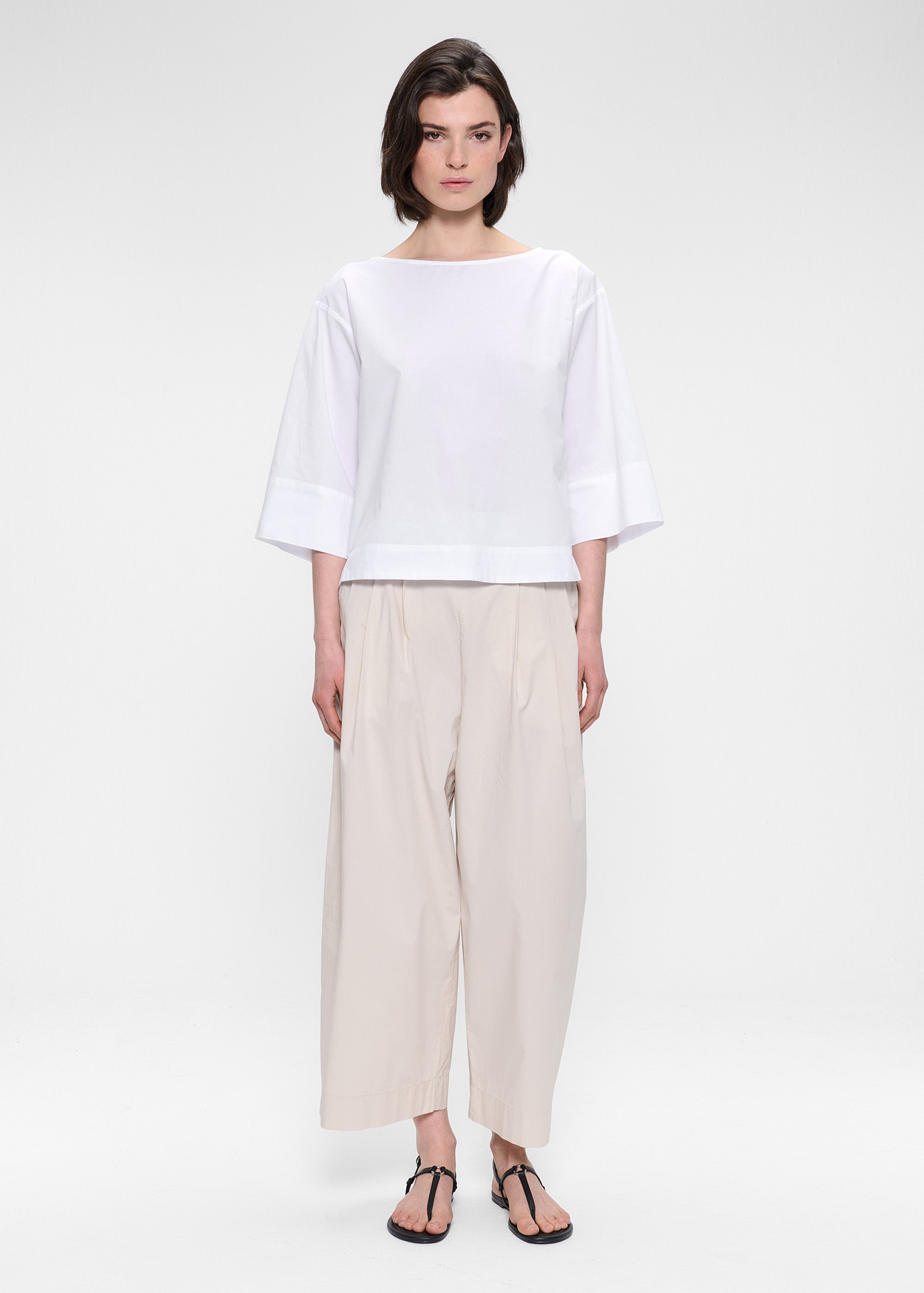 Deze top is gemaakt van crisp, papertouch Biologisch Katoen en heeft een boxy silhouet met lange korte mouwen en een flatterende boothals. De mouwen kunnen worden opgerold voor een meer casual look.