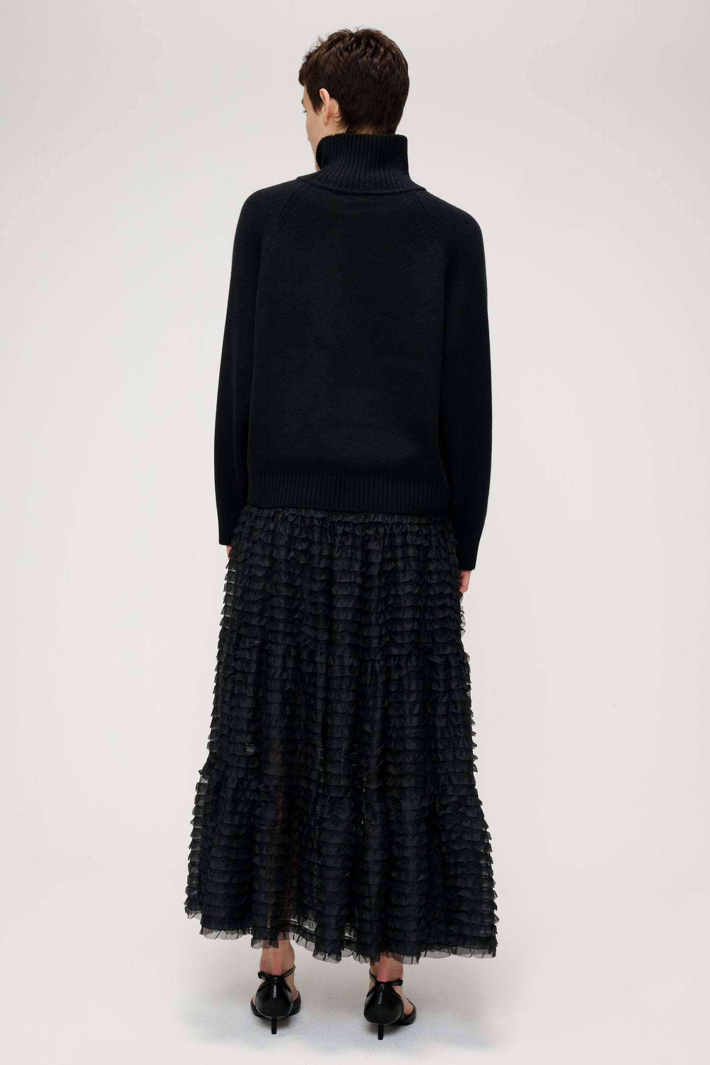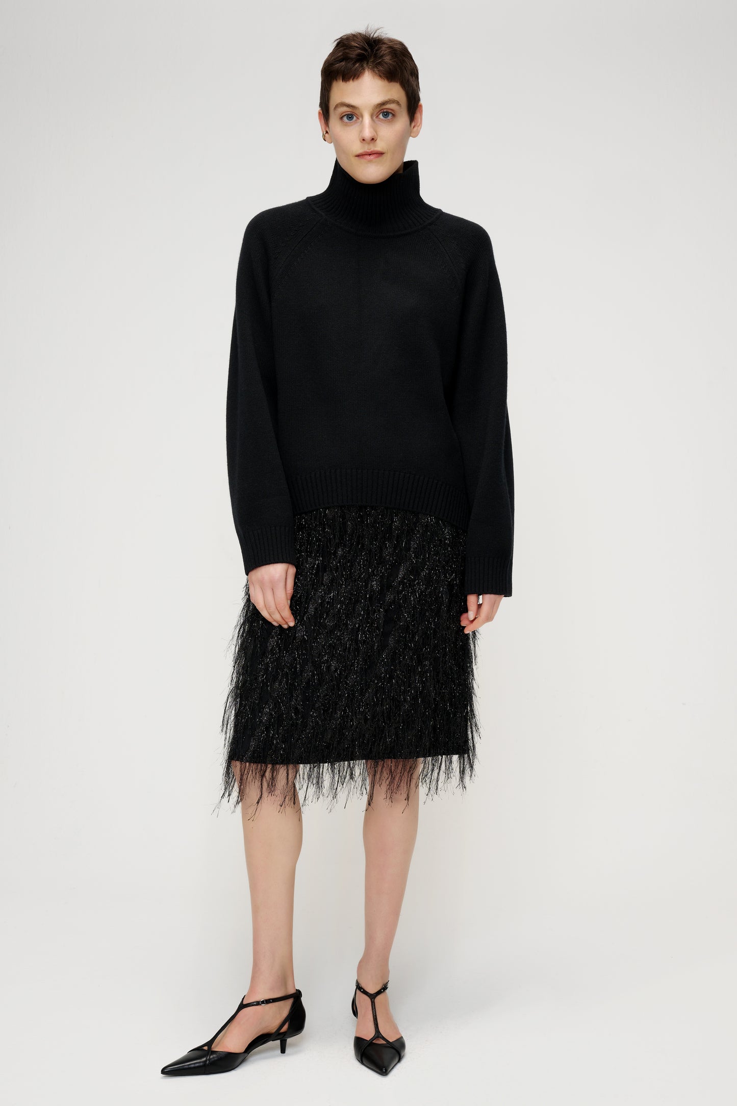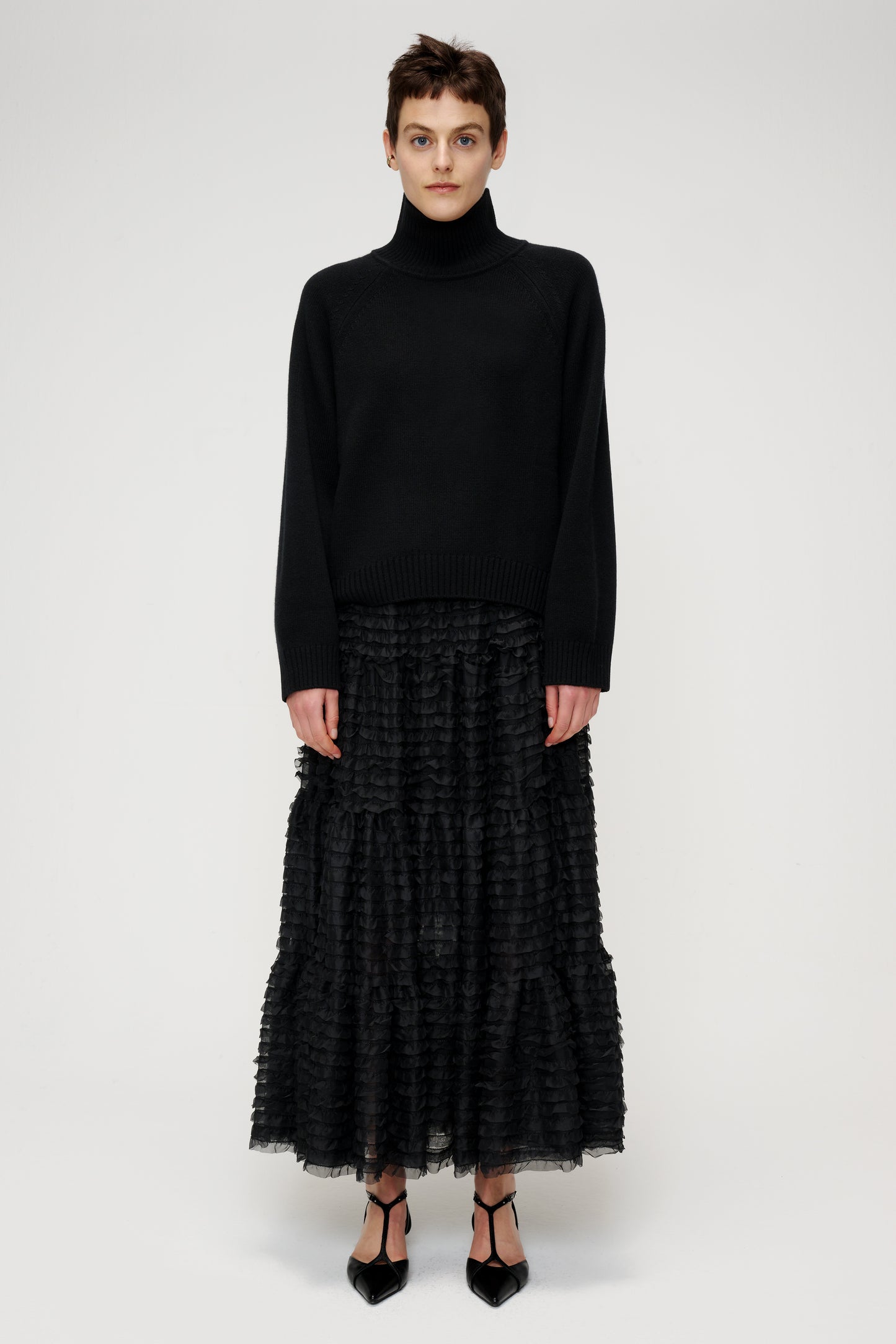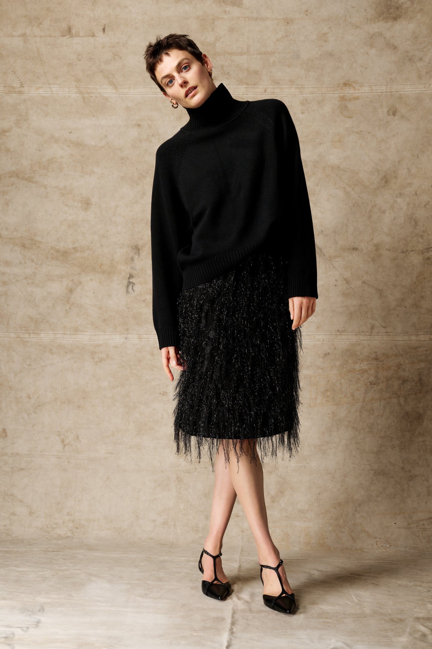 Update je wintergarderobe met de Merino Wool Pullover. Met comfortabele hoge hals en flatterende raglanmouwen. Met geribde details bij de hals, mouwen en zoom. Verkrijgbaar in zwart.