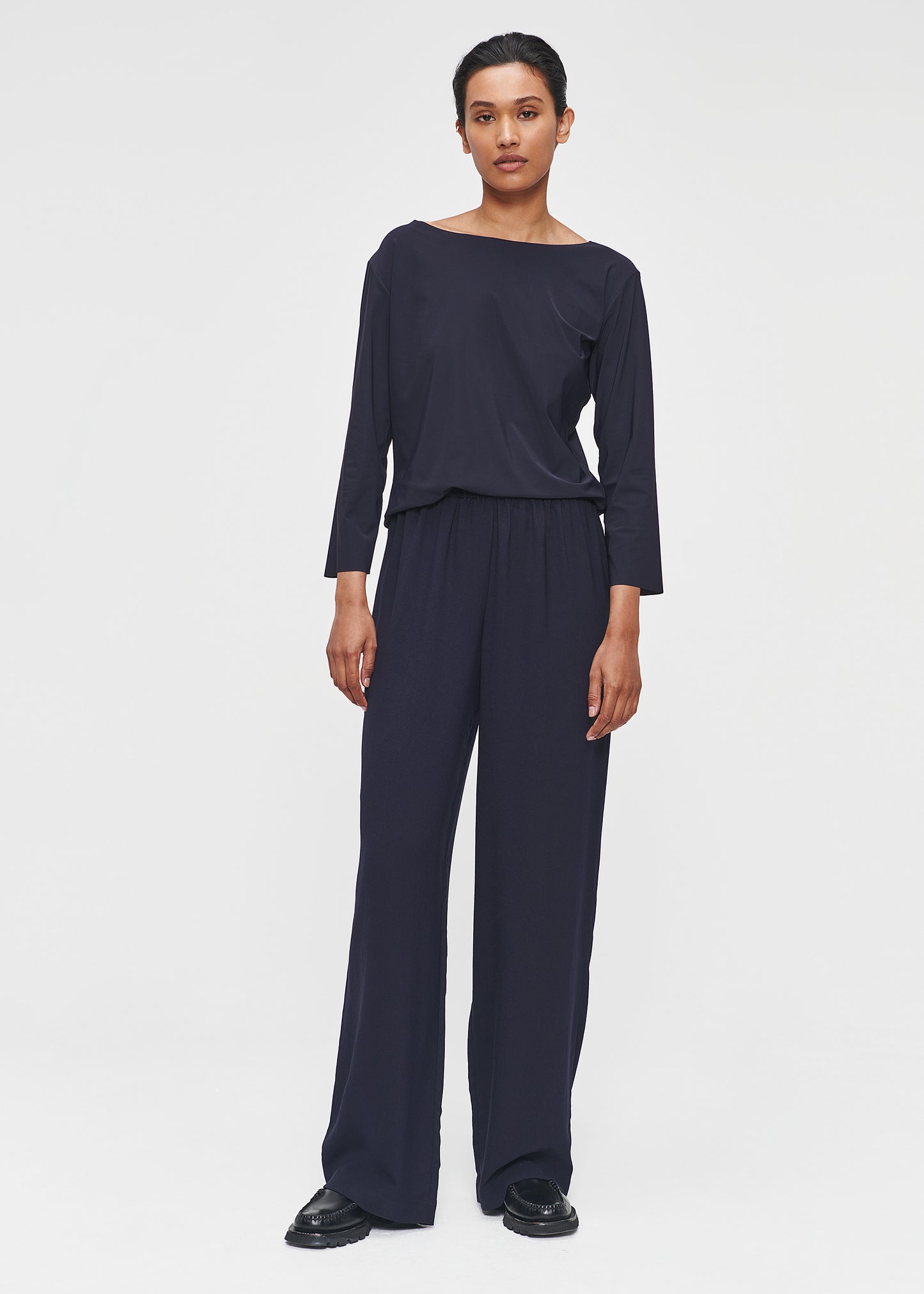 Dit T-shirt met driekwart mouwen gemaakt van stretch stof combineert kwaliteit met elegantie. Het T-shirt heeft een boothals en driekwart mouwen, waardoor het een ontspannen en toch vrouwelijke look en feel krijgt. Ga voor een minimalistische benadering door de top te dragen met een bijpassende broek.