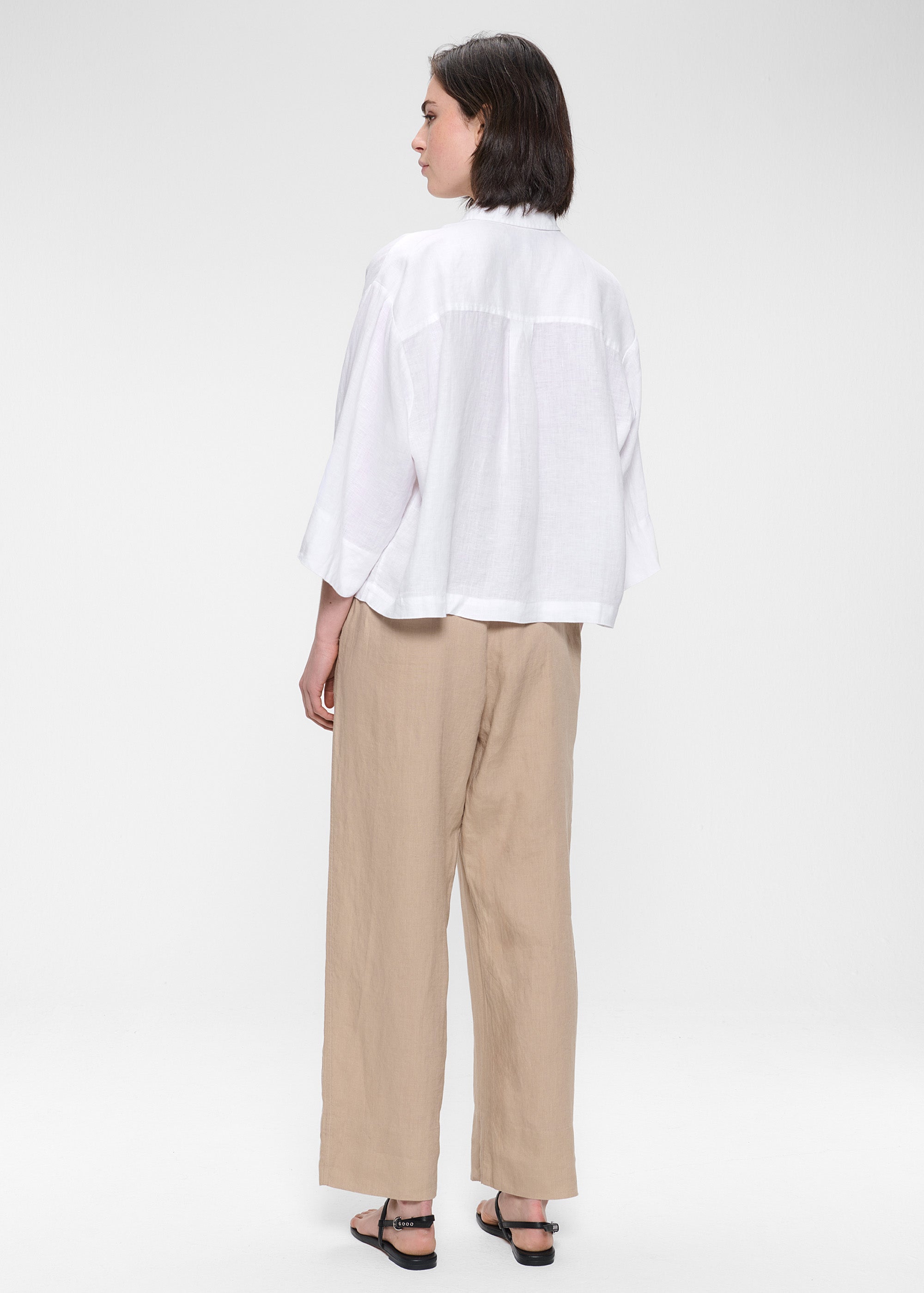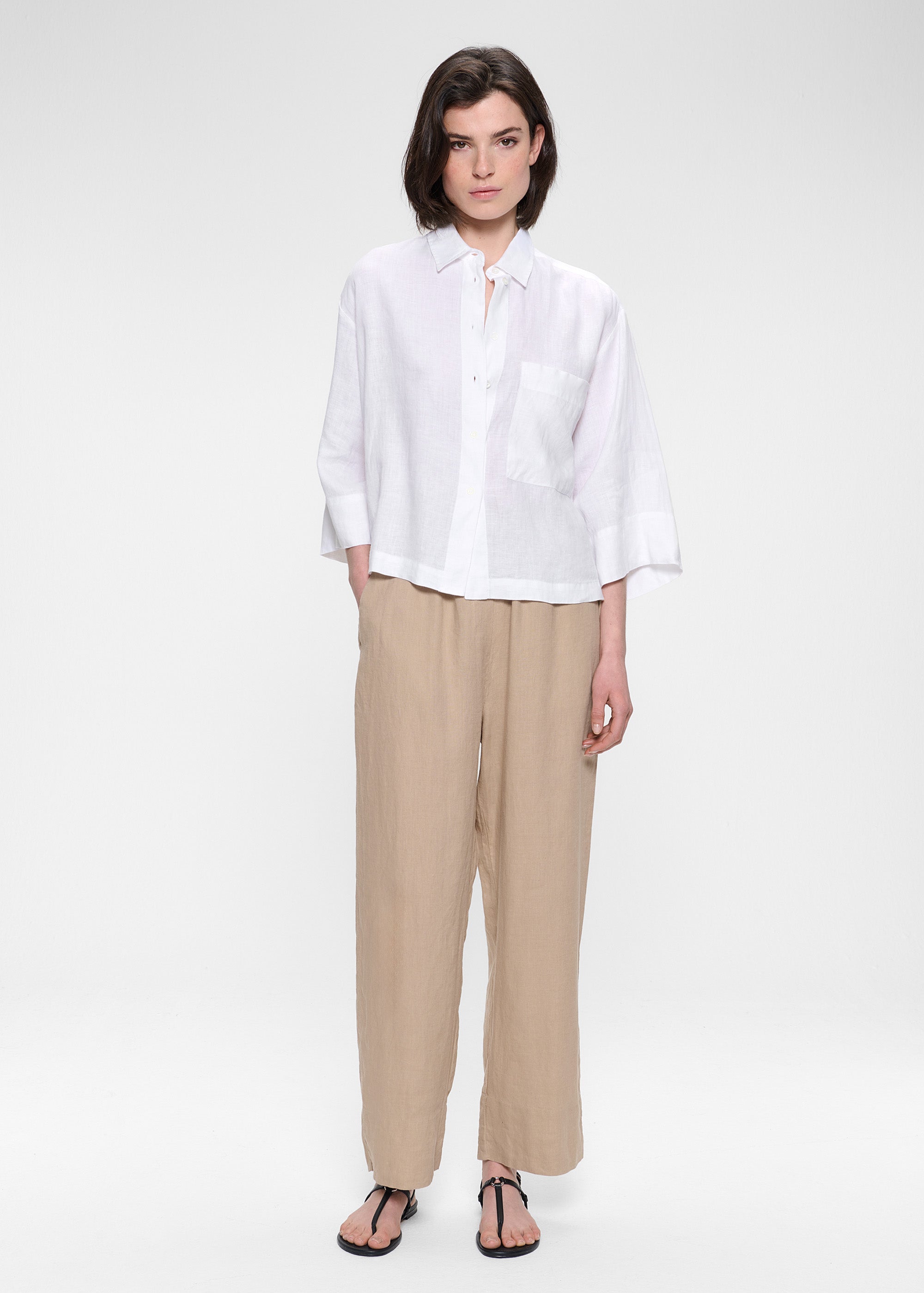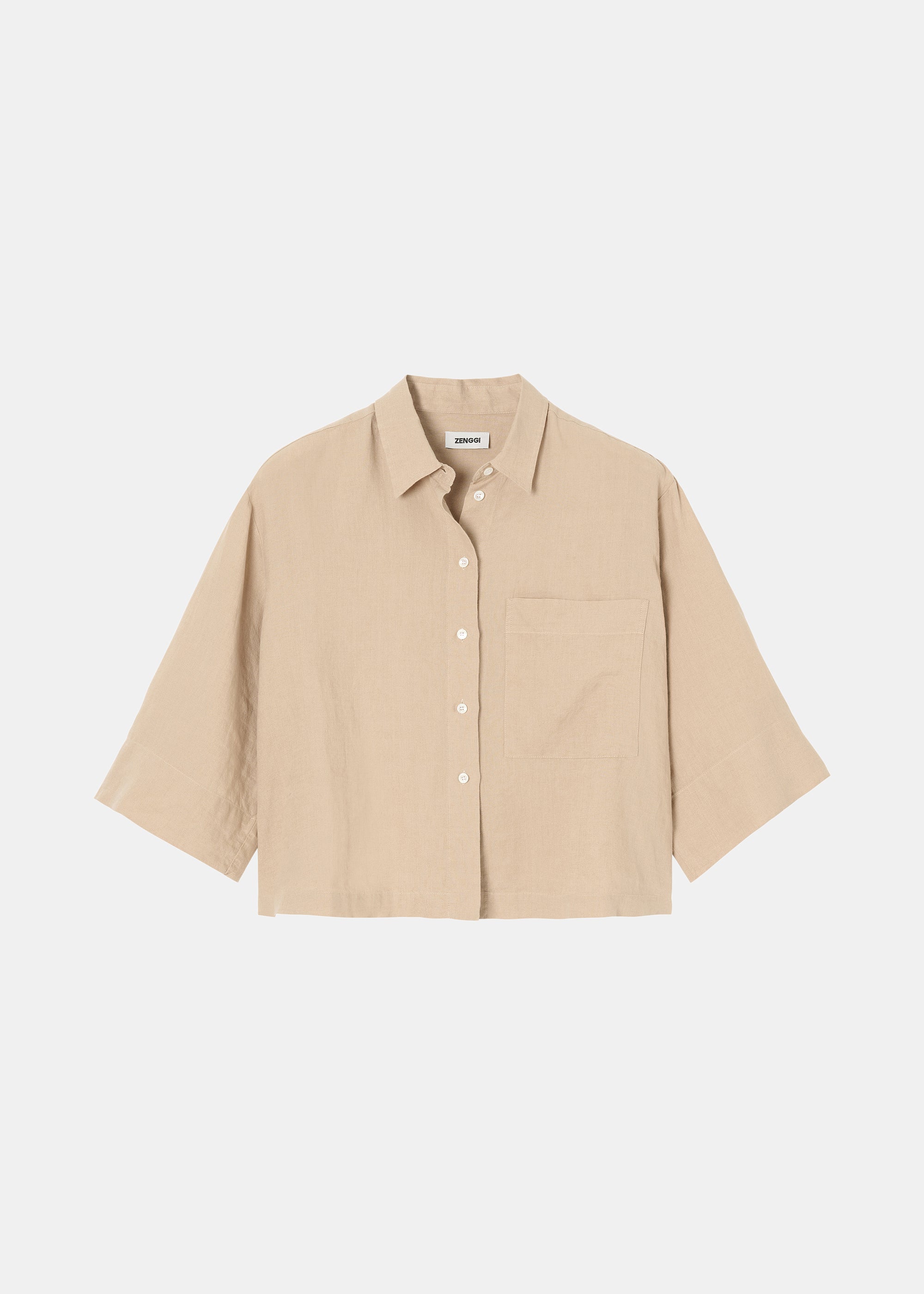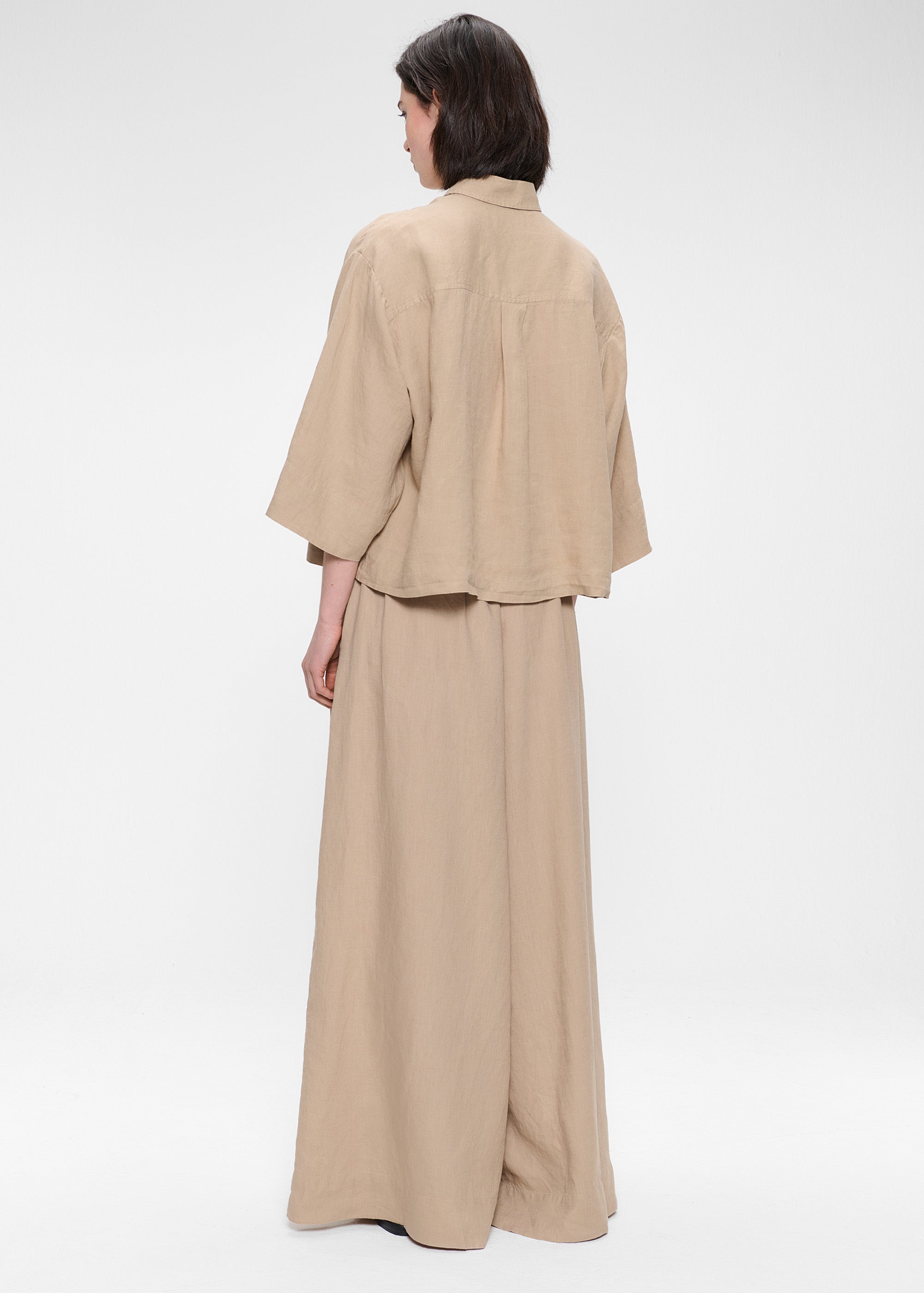 Dit casual Shirt is gemaakt van zachte Washed Linnen stof van Europese Vlas en is gemakkelijk te combineren met de Washed Linen Culottes broek voor een complete look. Het Shirt heeft een lichte cropped boxy fit, lange korte mouwen en een opgestikte zak aan de voorkant. Klassieke kraag en kleine knoopjes op het voorpand.