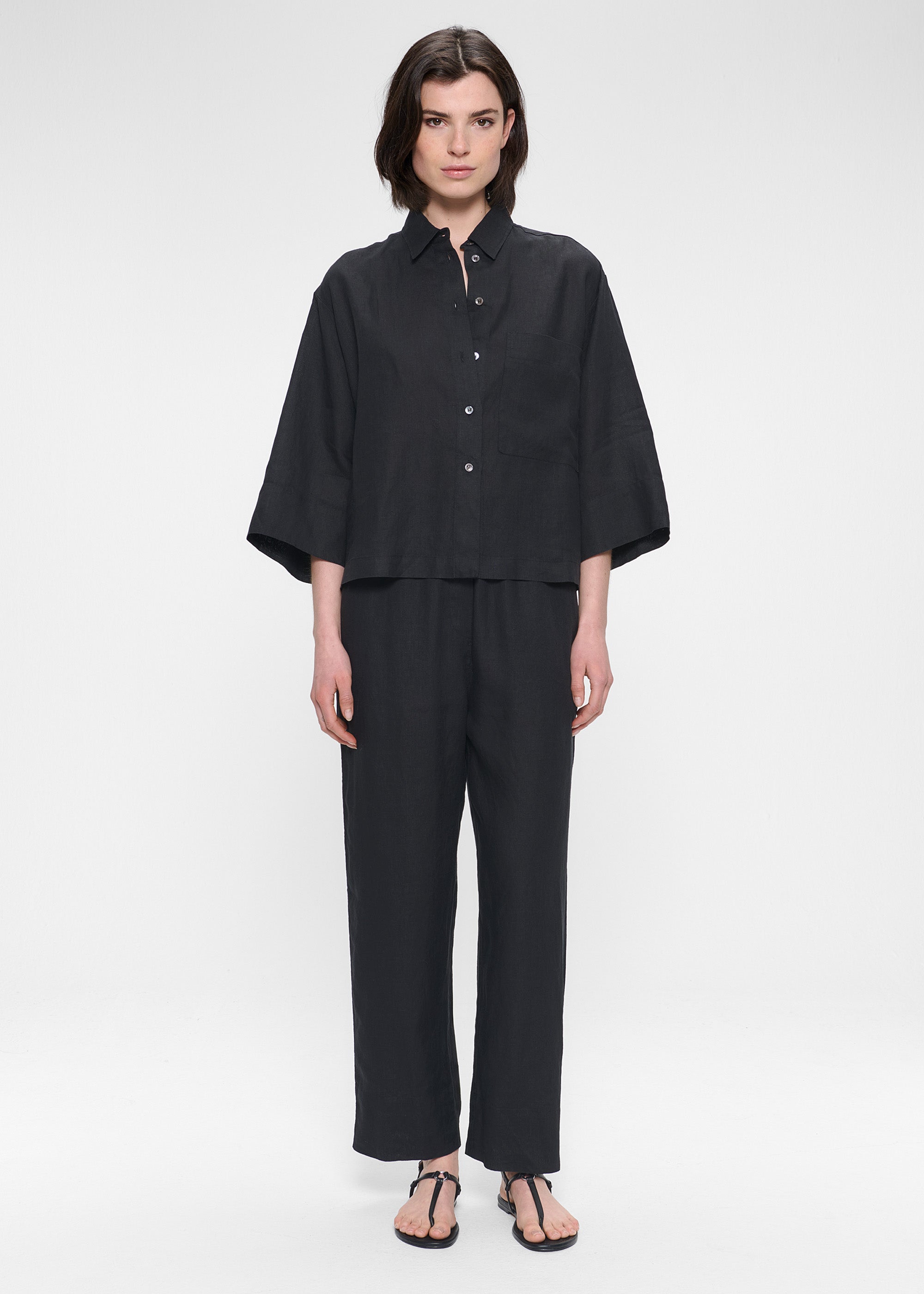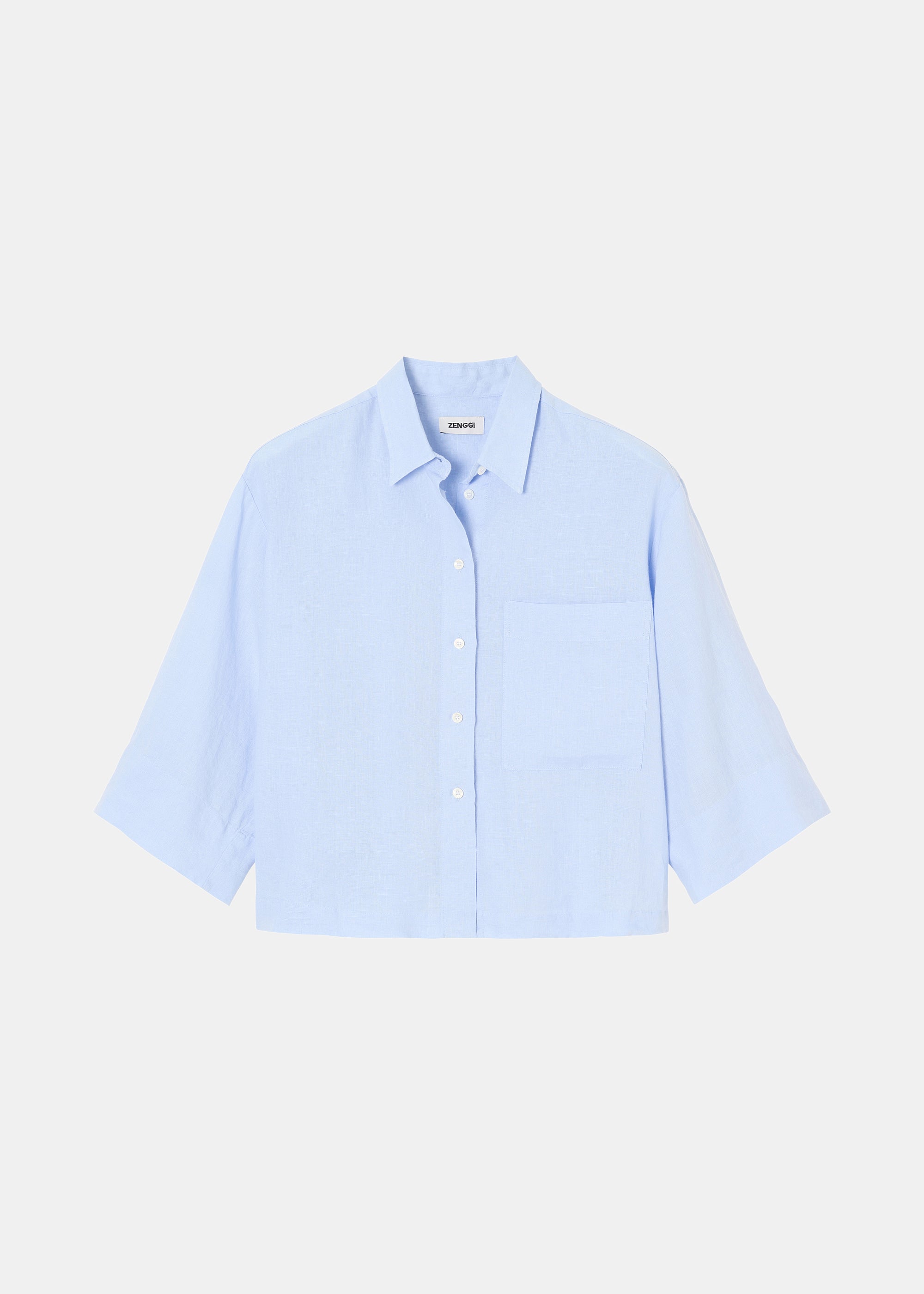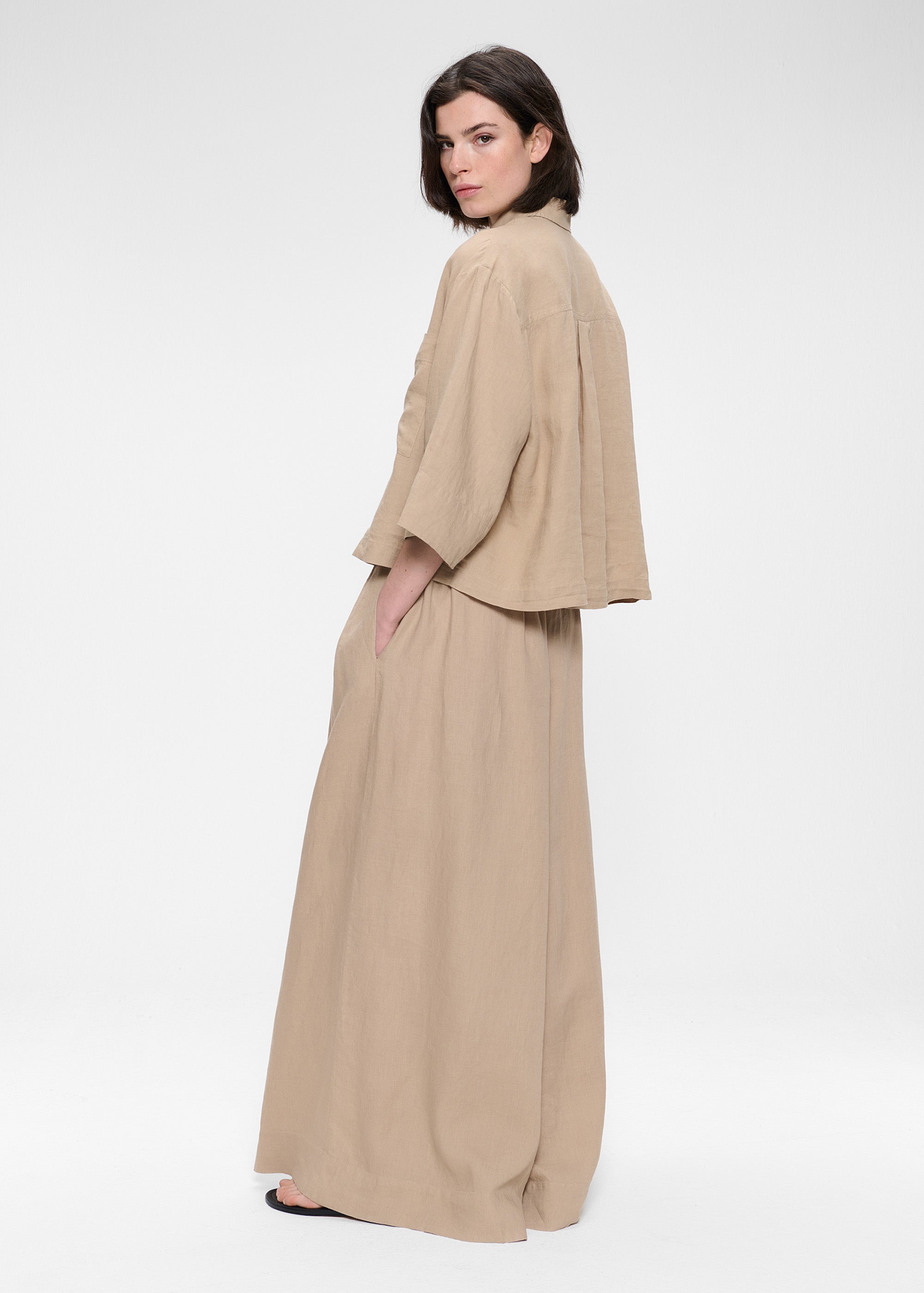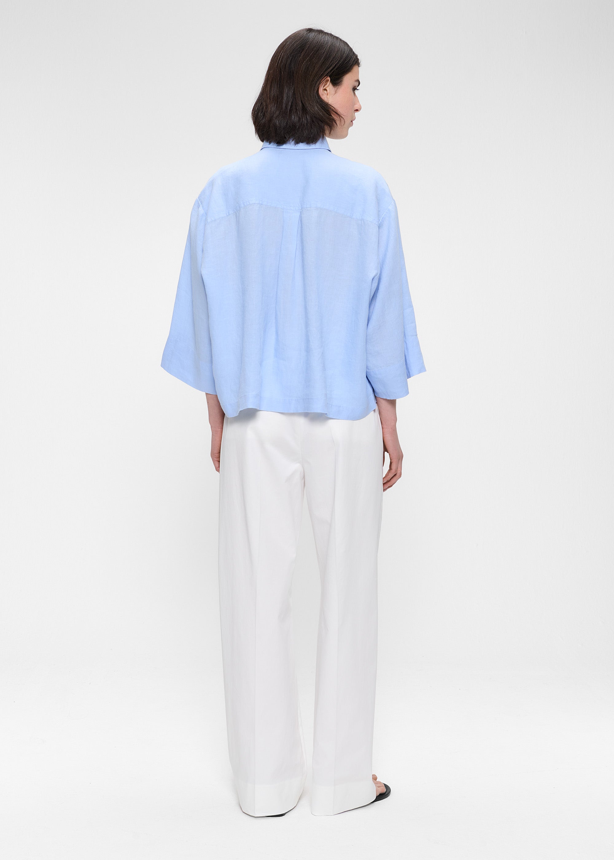 Dit casual Shirt is gemaakt van zachte Washed Linnen stof van Europese Vlas en is gemakkelijk te combineren met de Washed Linen Culottes broek voor een complete look. Het Shirt heeft een lichte cropped boxy fit, lange korte mouwen en een opgestikte zak aan de voorkant. Klassieke kraag en kleine knoopjes op het voorpand.